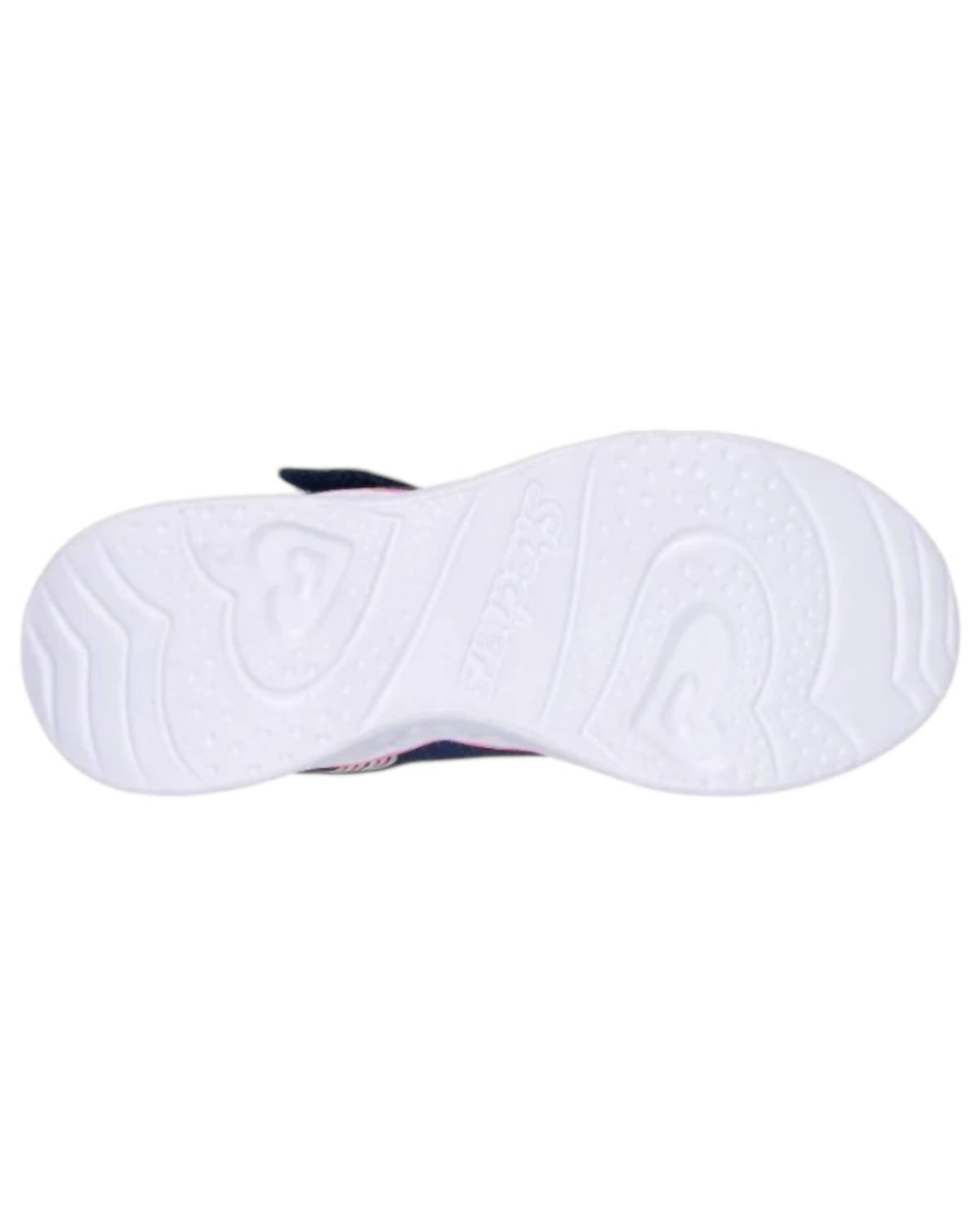 Shine bright with the Skechers Heart Lights® Infinite Heart Lights - Retro Hearts, designed for little girls ready to step out in style. These navy multi sneakers sparkle with a mesh upper and 3D rainbow heart print, offering both flair and fun. Featuring stretch laces and a Skechers Adaptive Closure, they promise a customized fit, while the sculpted light-up midsole with a 'heart chain' detail brings excitement to every step. With a flat heel and medium shoe width, these sneakers ensure comfort and convenience for all-day play.