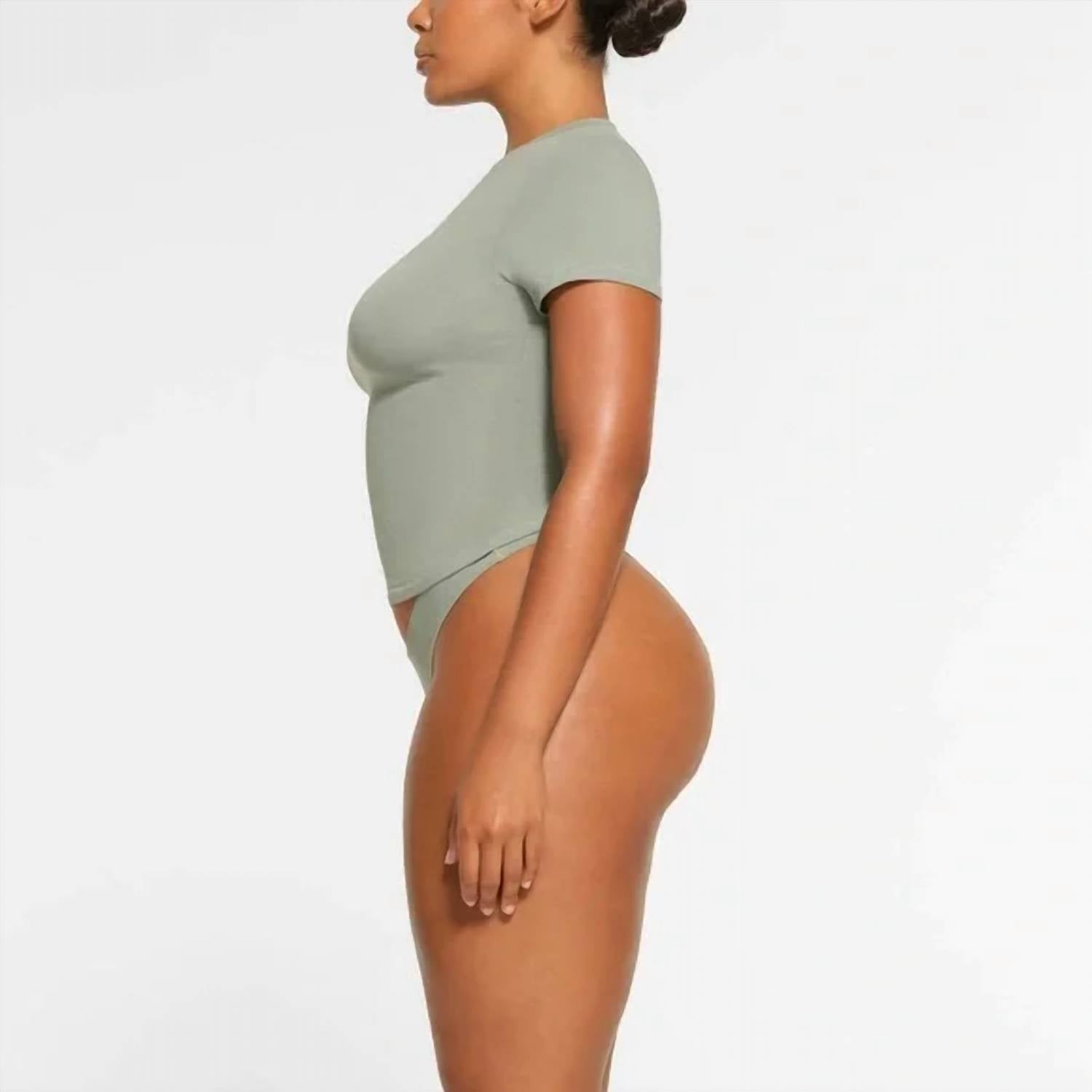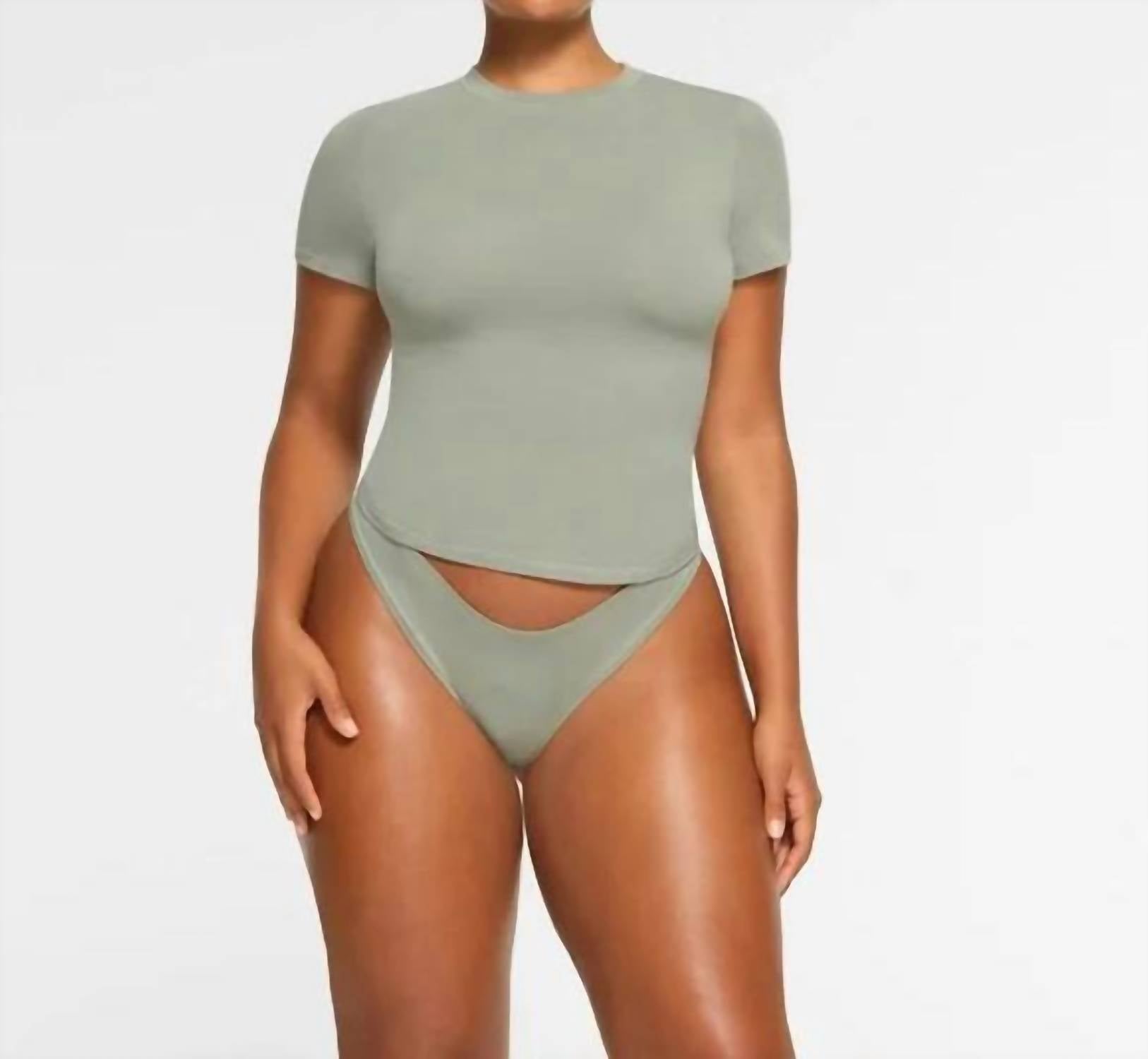 Look no further, you just found your perfect tee! Our viral t-shirt in the cotton everyone craves. This perfect five-star tee is made with our stretchy, lightweight cotton that enhances your curves with its body-hugging fit and elevates your comfort with its incredibly soft feel. Features stitching details along the short sleeves and hem and hits below the natural waist. Fits true to size.