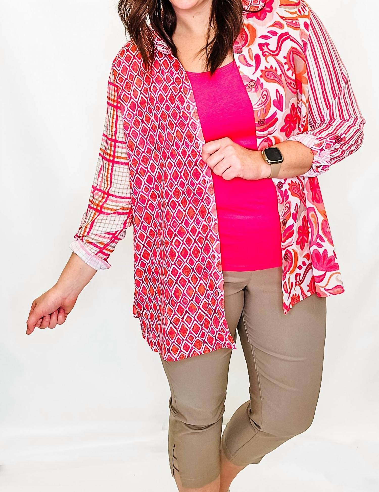 Introducing the 3-Strap Hem Crop Pant by Slimsation By Multiples, crafted for style and comfort in a chic stone color. These pull-on pants boast a crop length and feature convenient front pockets, offering both practicality and sleek design. Made from a blend of 74% rayon, 21% nylon, and 5% spandex, they deliver a flexible tummy control panel to smooth and slim your silhouette with shape recovery technology. Machine wash cold with like colors. With a 24" inseam for a perfect fit.