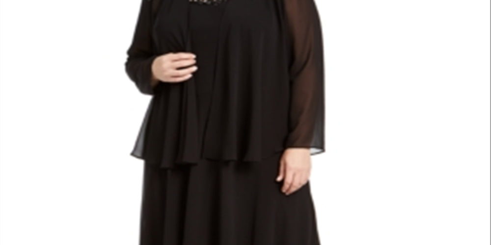 SLNY Women's 2 Pc Jacket Two Piece Dress Black Size 16W