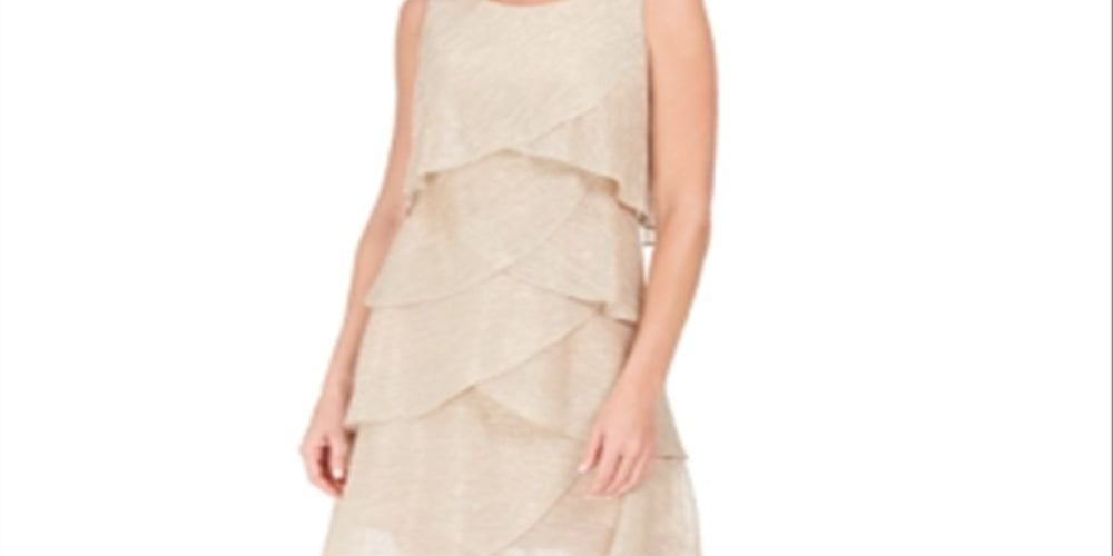 SLNY Women's Metallic Tiered Shift Dress Beige Size 6