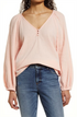 Small-Size Caslon Raglan Sleeve Seersucker Top in Pink Chintz