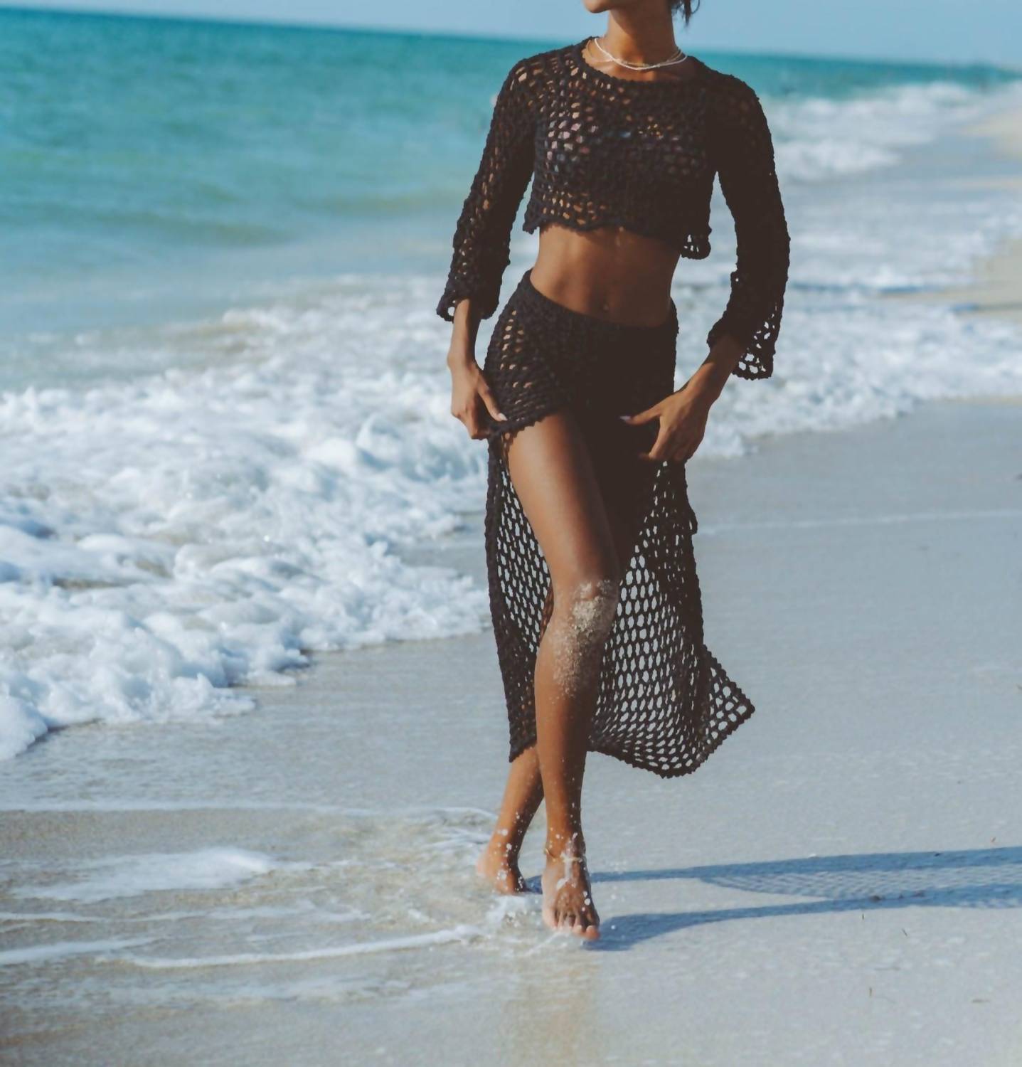 The midi length skirt is here to stay and we especially love this style. Introducing the Women's Alessia Long Crochet Skirt by SOAH, a perfect blend of relaxed elegance for summer beach days. This black midi skirt features a textured crochet pattern, offering a sophisticated fit and is equipped with a convenient tie closure. Designed without pockets for a sleek silhouette, this effortless piece is a must-have for your seasonal wardrobe. Please note that care instructions are not provided.