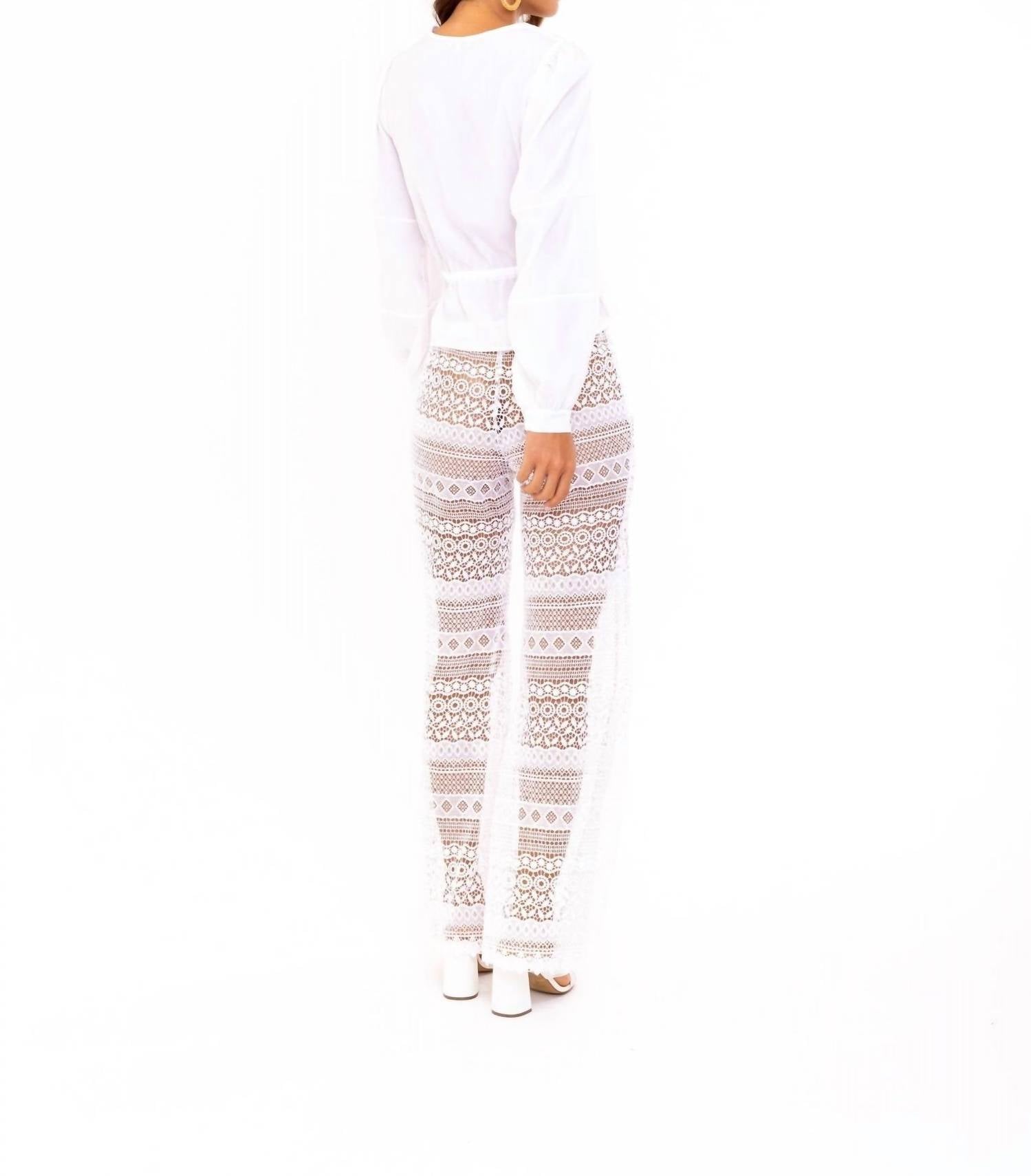 Elevate your vacation wardrobe with the Women's Dylan Peasant Blouse by SOAH, a perfect blend of style and comfort. This solid white blouse features long sleeves and a flattering low V-neckline with adjustable ties under the bust. Made in the USA from 100% polyester, it is fully lined and offers a chic, streetwear-inspired look. Care instructions suggest hand wash only to maintain its pristine condition.