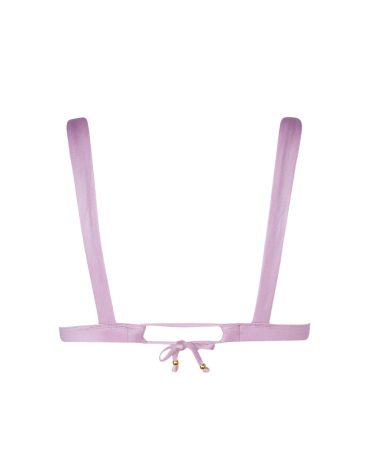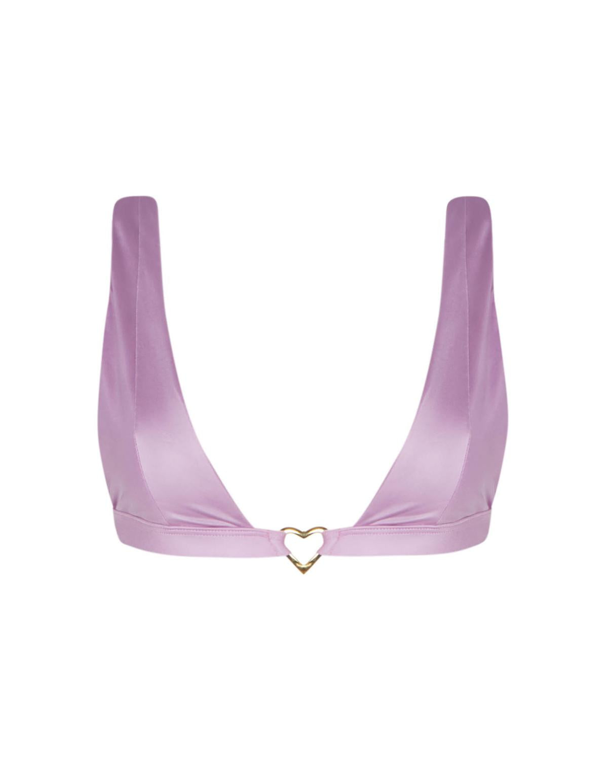 Dream of your next beach getaway in this cute little number. Pair with strappy sandals, a floppy hat, and an oversized tote to complete the perfect vacation look. Stay comfortable and stylish with the Women's Love Triangle Bikini Top by SOAH, now available in a sophisticated lilac hue. This bikini top offers a wide triangle shape for generous coverage and security, making it perfect for sun-filled beach days. It boasts a solid pattern and bralette style, tailored for ultimate elegance and comfort. Care for this chic swimwear by hand washing it to maintain its allure for summers to come.