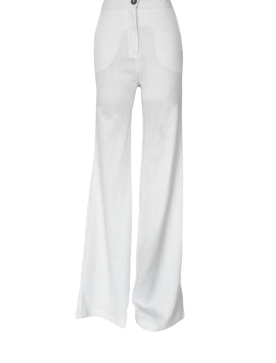 Embrace boho chic style with the Women's Vienna Flare Pants by SOAH in a pristine white hue. These pants feature a flared leg and a flattering wide-leg silhouette, perfect for a relaxed beach day or a summer outing. They come with side welt pockets and a concealed zip closure for a sleek look. Ideal for warm-weather adventures, these pants are a solid wardrobe staple.