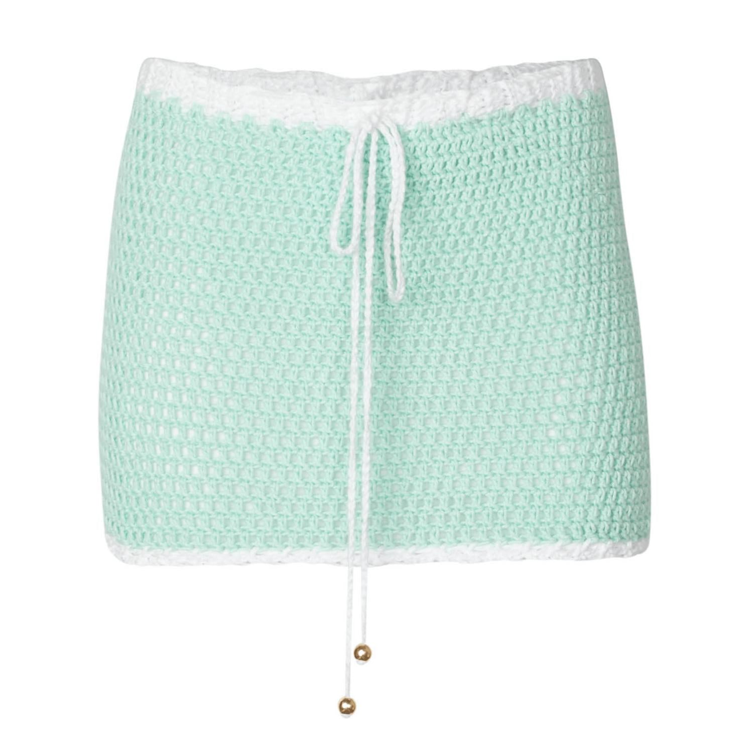 The perfect mini skirt does exist. Introducing the SOAH Women'skaia Crochet Mini Skirt in a stunning pastel green hue, perfect for your next summer beach day. This textured mini skirt features a slim, high-rise silhouette with a tie closure, accentuating its adjustable waistband. Enjoy the unlined design that exudes a classic beachy vibe. Elevate your warm-weather wardrobe with this vibrant, maximalist piece.