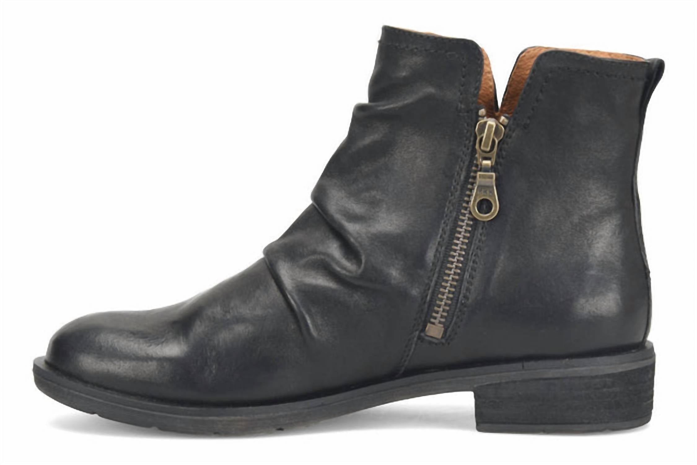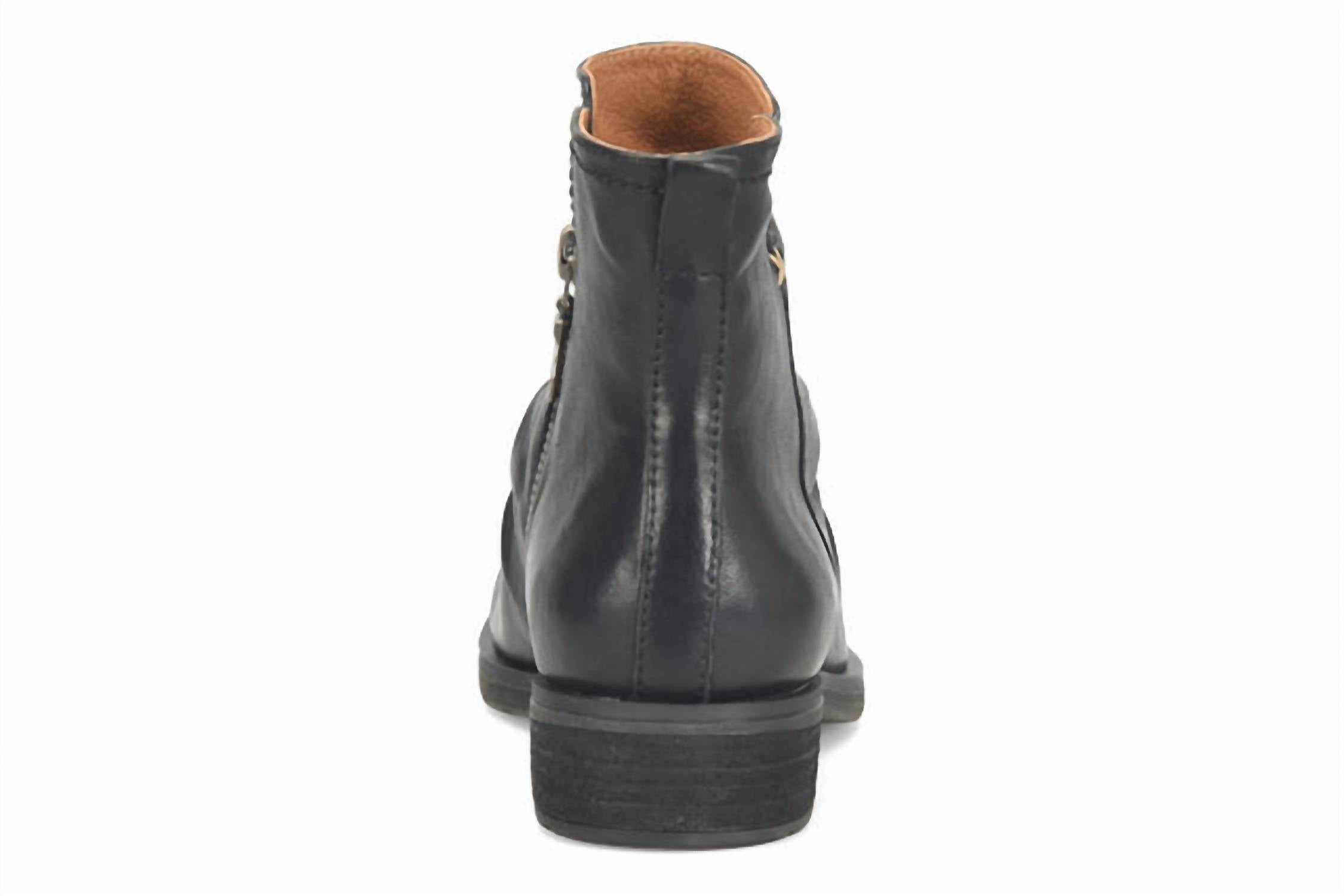 Say hello to the perfect, most versatile boot. The ankle height makes this style easily transition from day to night. Wear them with your favorite skinny jeans and tee for a more laid back look, or pair them with your favorite mini dress and jacket for a night out on the town. Step out in style with the Women's Beckie II Bootie by Sofft, crafted in luxurious full-grain leather available in season-perfect black. These booties feature a comfortable 1.5-inch stacked heel, soft microfiber lining, and a cushioned leather-lined footbed with arch support for all-day comfort. The lightweight TPR outsole with a leather welt ensures durability and style, perfect for your everyday looks. Closure is easy with the zipper, and the round toe shape adds a classic touch.