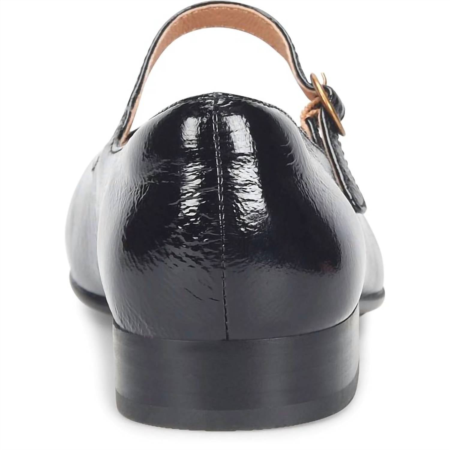 A classic loafer that is both comfortable and polished. Meet the Women's Elsey Flats by Sofft, a chic update on the timeless mary jane in sophisticated black patent leather. Designed for versatility, these flats feature an adjustable buckle and a refined square toe silhouette. The interior promises all-day comfort with a leather lining, padded heel collar, and a soft microfiber-lined footbed cushioned at the ball, heel, and arch. Lightweight on the feet, the flats boast a TPU outsole and a wrapped or stacked heel standing at 1 inch tall.