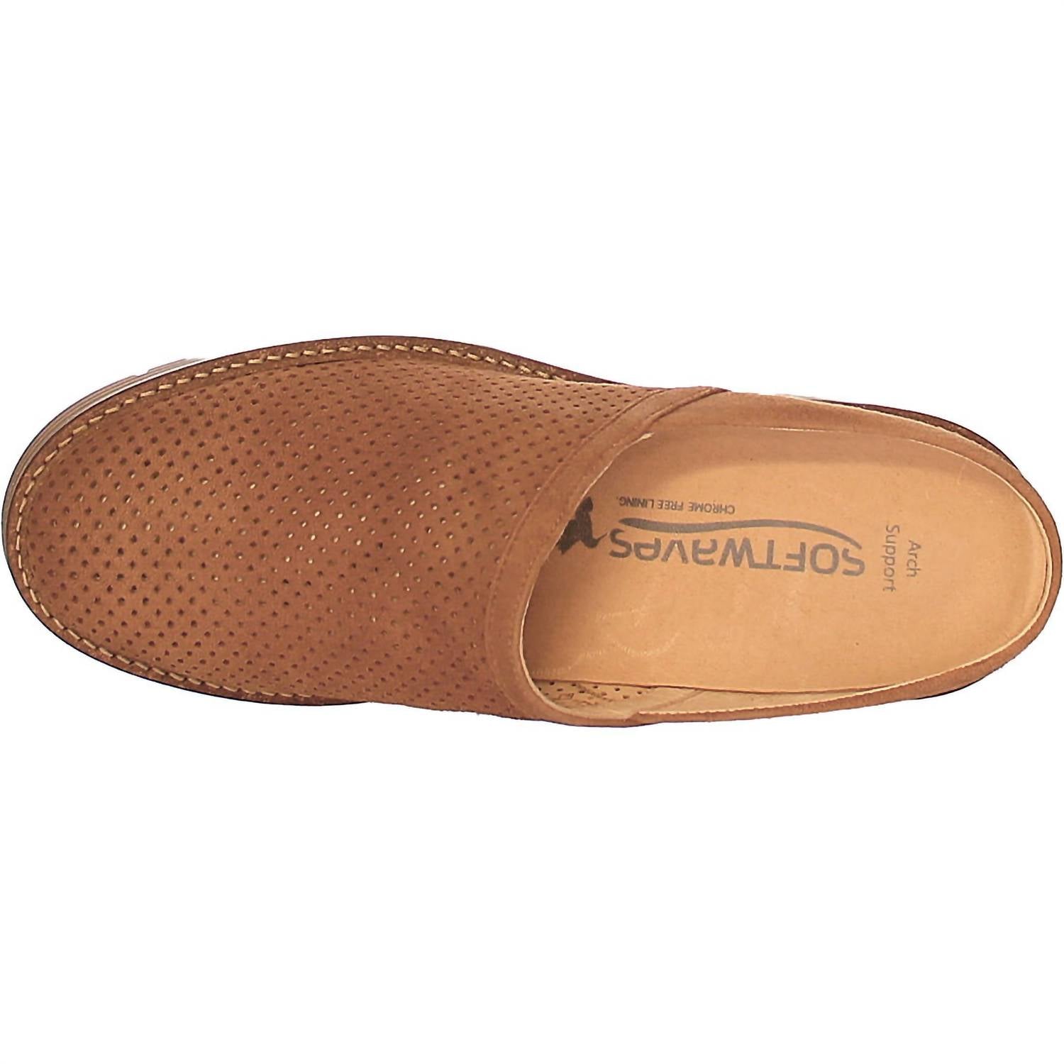 A trend that everyone is loving and this style might just be our favorite. Step into timeless elegance with the Women's Mansi Slip On Clog Mule by Softwaves, crafted in suede for a luxurious feel. These clogs feature suede uppers and a round toe, complemented by all-leather linings that enhance breathability with perforated detailing. Enjoy unparalleled comfort with a thick cushioned footbed and excellent arch support, all set atop a sturdy 3" block heel with a 1" platform. Designed for a perfect blend of style and support, these mules are a must-have addition to any wardrobe.