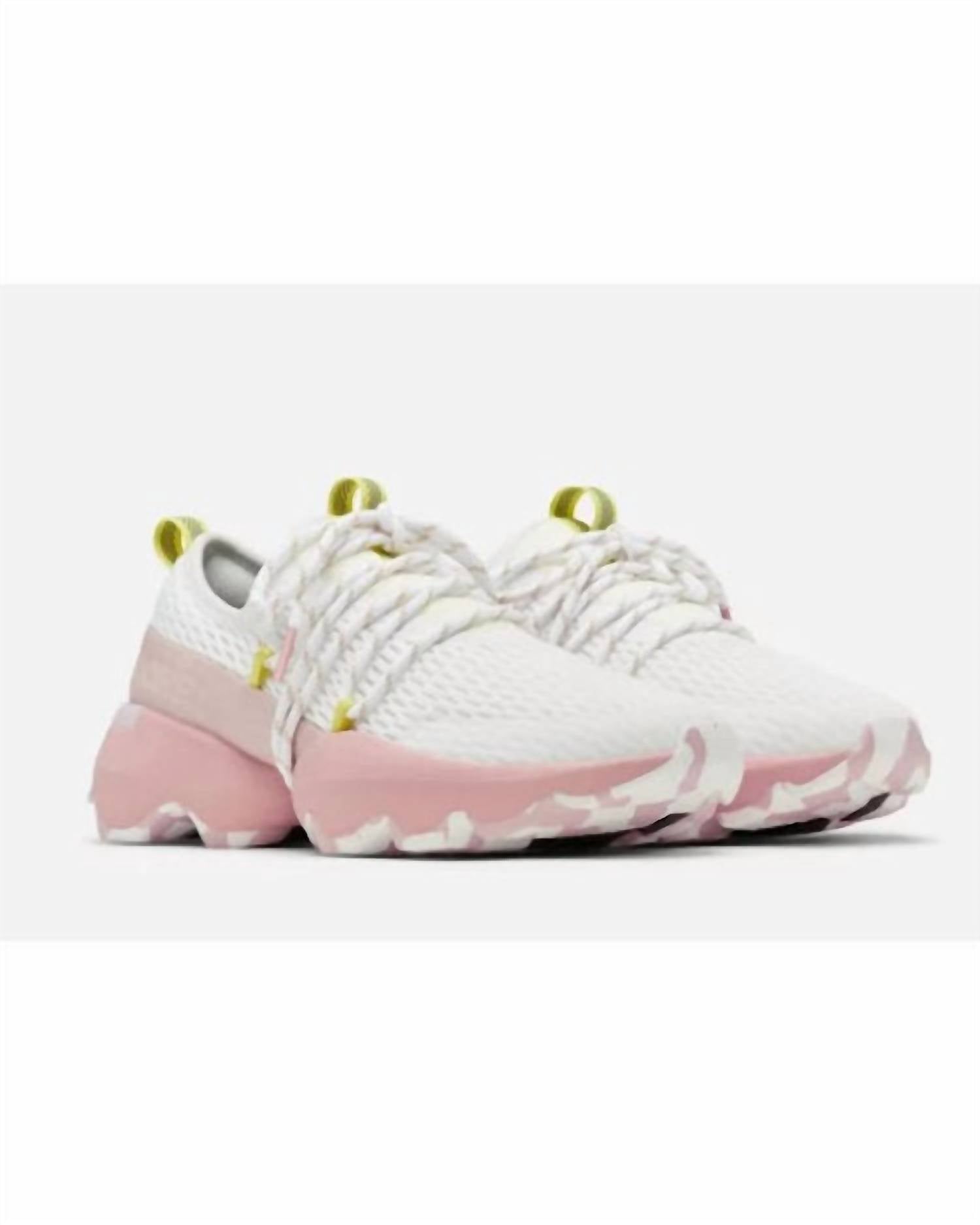 Step into the future of footwear with the Women's Kinetic Impact Lace 22 sneakers by SOREL, crafted in the calming Moonstone hue. Designed for those on the move, these sneakers feature a breathable air mesh upper with functional no-sew TPU overlays and full-grain leather accents. The livelyfoam midsole incorporates 10% algae biomass for eco-friendly comfort, while the high-traction rubber outsole ensures stability with every step. Heel Height: 1 inch. Platform Height: 1/2 inch. The 56-inch laces provide a secure fit, making these the perfect blend of style and performance for your fitness and athleisure needs.