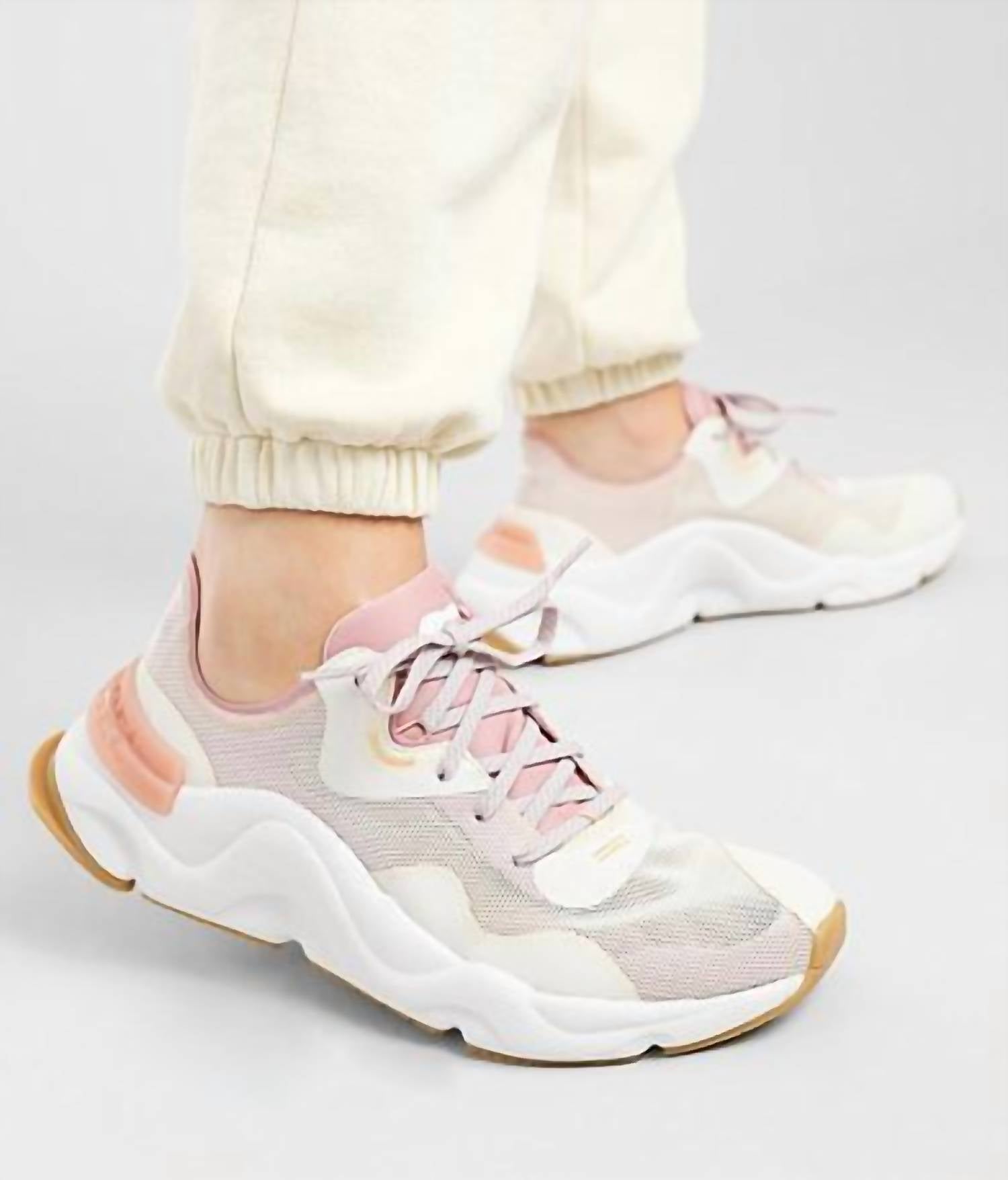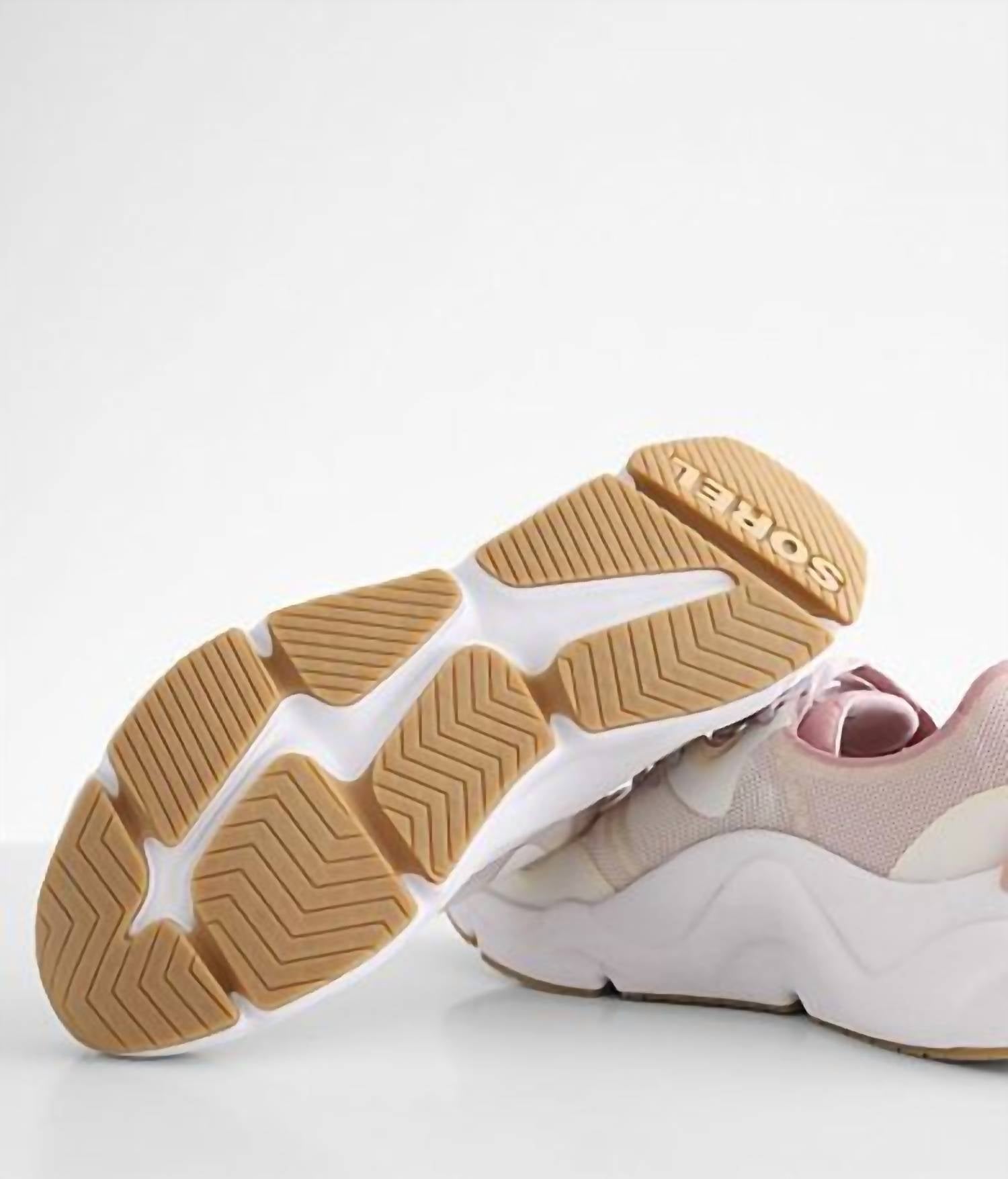 Cute, functional, and comfortable. These sneakers check all the boxes. Elevate your footwear collection with the Women's Kinetic Rnegd Float Shoes by SOREL in a chic Chalk shade. These women's sneakers boast an ultra-lightweight design, featuring a breathable mesh upper and a Livelyfoam midsole with 10% Bloom™ foam for utmost comfort. The shoe is grounded with a high-traction rubber outsole and offers a platform height of 1/2 inch in addition to its 1-inch heel height. Perfect for travel and spring adventures, these sneakers ensure you stay cool and stylish with every step.