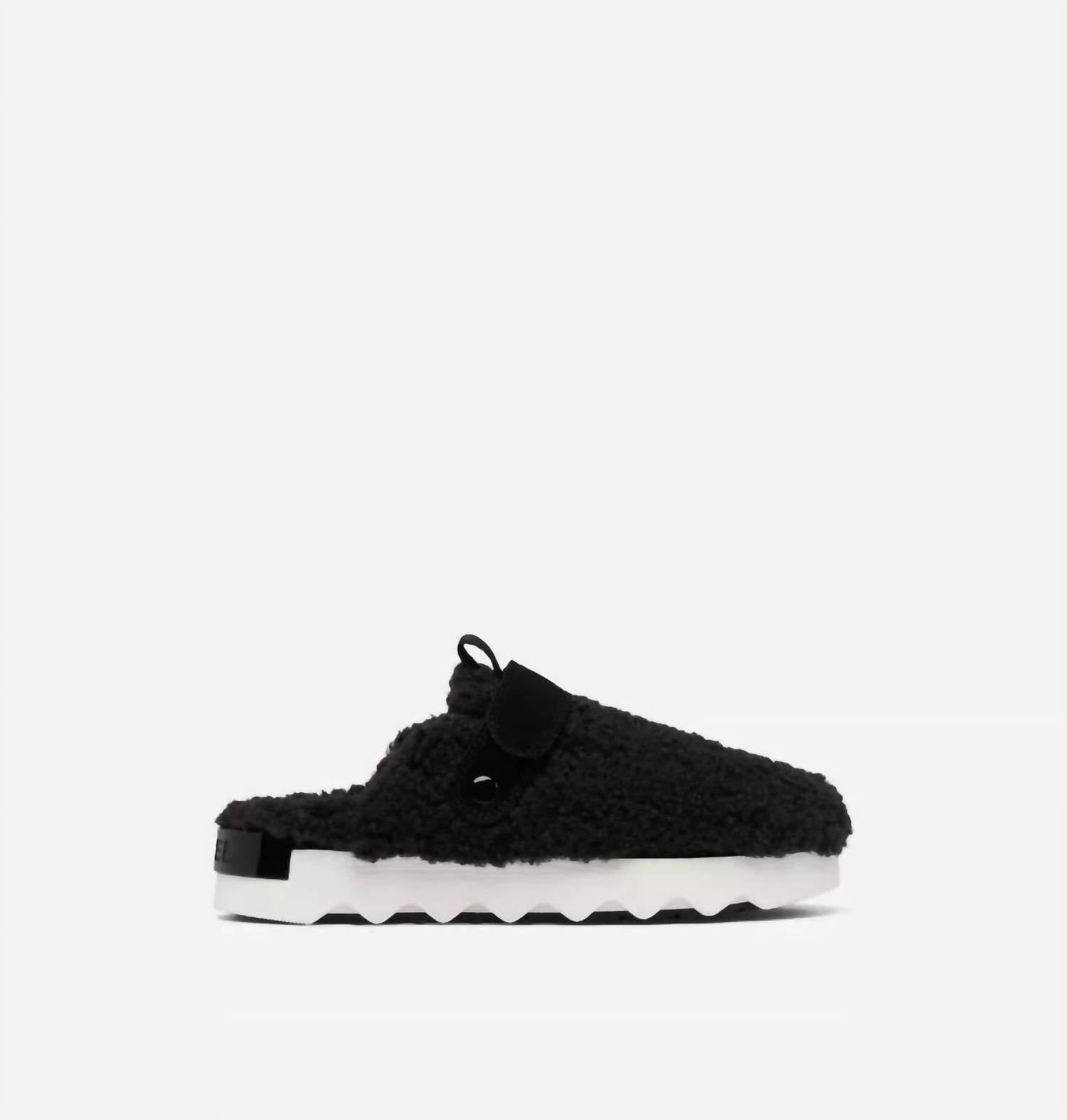 Stylish, comfy, and versatile. We can't find anything wrong with these. Step into comfort with the Women's Viibe Cozy Clog by SOREL, designed for style and ease. These clogs feature a faux shearling upper with an adjustable webbing strap across the midfoot for a snug fit. The molded and contoured EVA footbed provides superior cushioning, complemented by a LIVELYFOAM™ midsole and rubber outsole for optimal walking comfort. With a 1-inch platform height, these imported clogs come in a chic Black/Sea Salt color, perfect for any preppy fall occasion like a housewarming or New Year's Eve event.