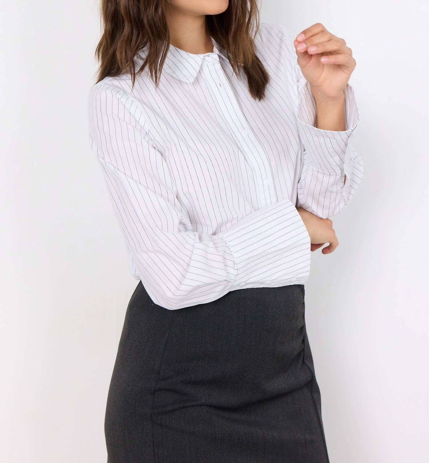 A classic button down shirt that will never go out of style. Introducing the Vibika Top, a refined stripe design shirt crafted from 100% organic cotton. This elegant button-down piece features long sleeves and a classic collar, perfect for creating a casual yet chic ensemble with jeans and sneakers. Closure: Button closure. Care: Hand wash cold, line dry.