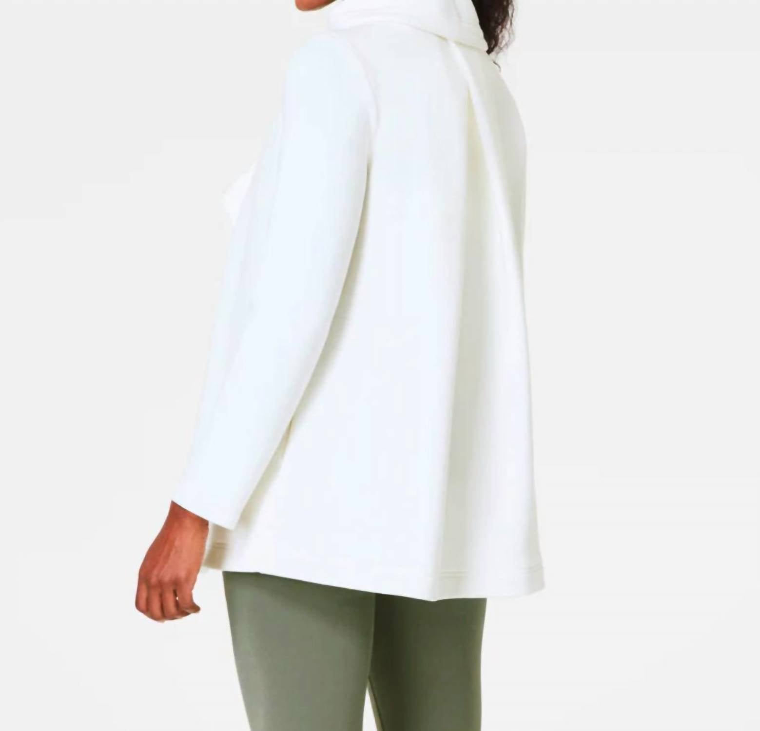 Experience the refined comfort of the Air Essentials Drape Front Cardigan in Powder by Spanx, perfect for any occasion. This women's cardigan features long sleeves and is crafted from a luxurious blend of 47% Modal, 46% Polyester, and 7% Elastane, ensuring it feels silky against your skin with optimal airflow. It is designed with a stylish pull-on closure and a sophisticated V-neckline, ideal for embracing the quiet luxury trend. Care for this solid, lightweight garment is simple: machine wash with like colors and line dry, using non-chlorine bleach as needed.