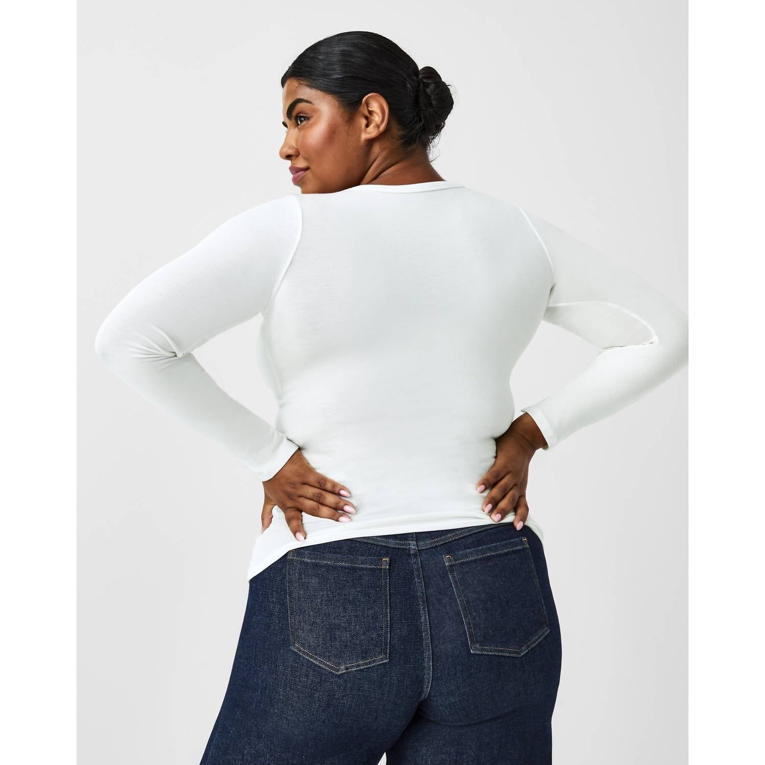 A long sleeve top you can wear with denim, skirts, well... just about anything! Embrace comfort and timeless style with the Better Base Long Sleeve Tee by Spanx, designed especially for women. This long-sleeve powder tee, featuring a solid pattern and made from eco-conscious recycled TENCEL™ Modal, offers both warmth and versatility. It features a crewneck and a convenient pull-on closure. Care for this wardrobe staple with a gentle hand wash and line dry.