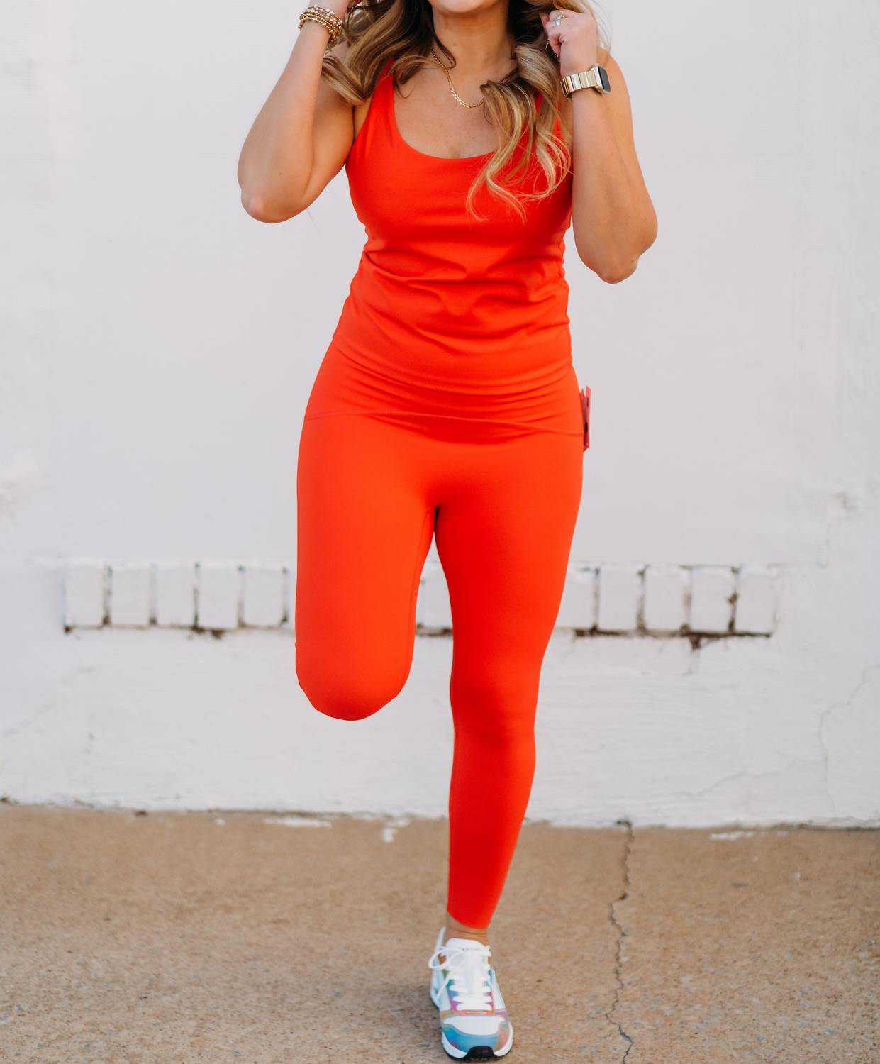 The legging you didn't know you needed and you won't want to take off. Enhance your workout wardrobe with the Spanx Booty Boost 7/8 Leggings in vibrant Poppy. These pull-on leggings are crafted from a signature performance fabric designed to ensure exceptional fit and comfort, complete with a contoured waistband for targeted shaping. Their skinny leg design offers a streamlined silhouette, perfect for fitness or workout occasions. Please note, these leggings do not have pockets, and specific care instructions are not provided.