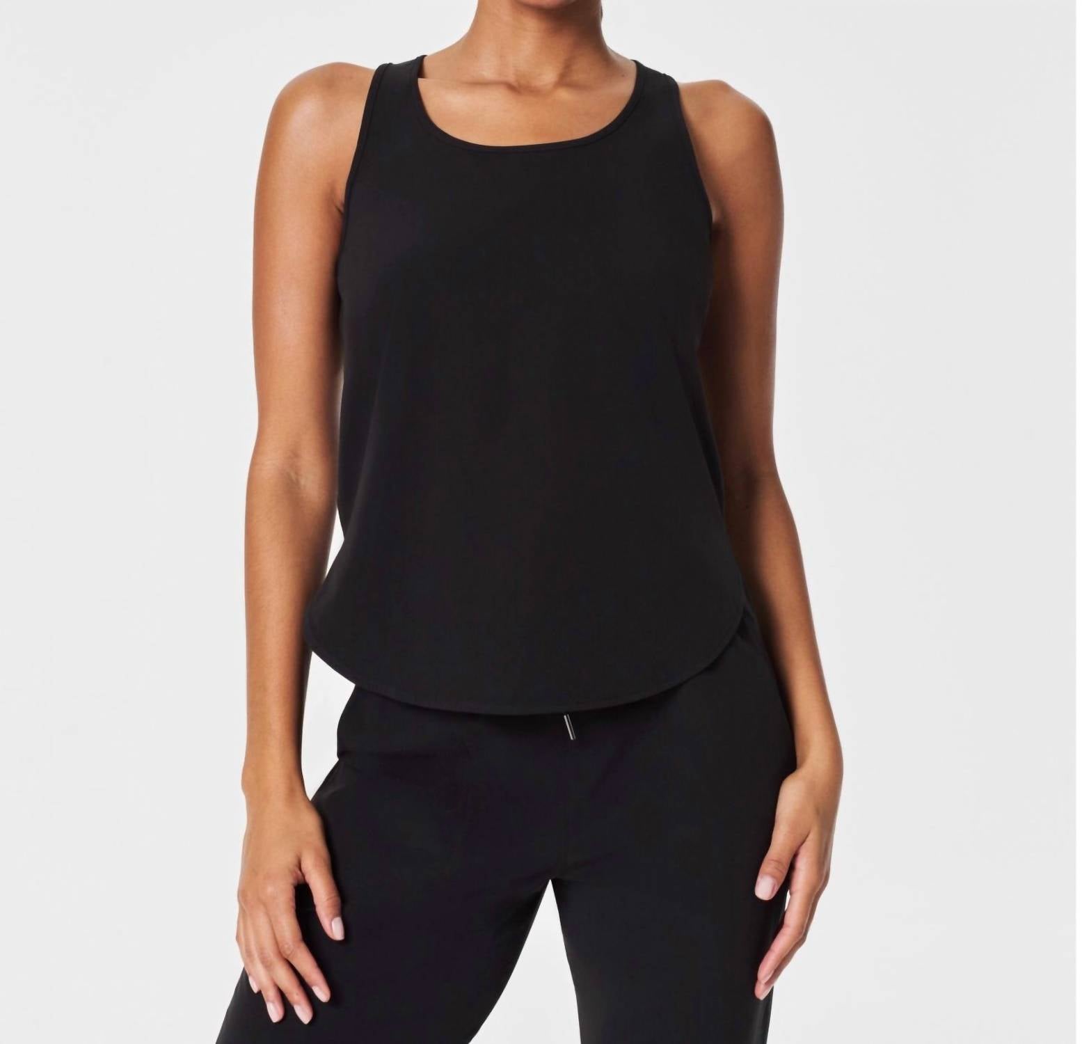 Fit, fabric and functionality. This tank top checks all the boxes.This Out of Office Shell Tank Top features a scoop neck and sleeveless design for effortless, all-day comfort and style. Made of Rayon, Polyester, Spandex.
