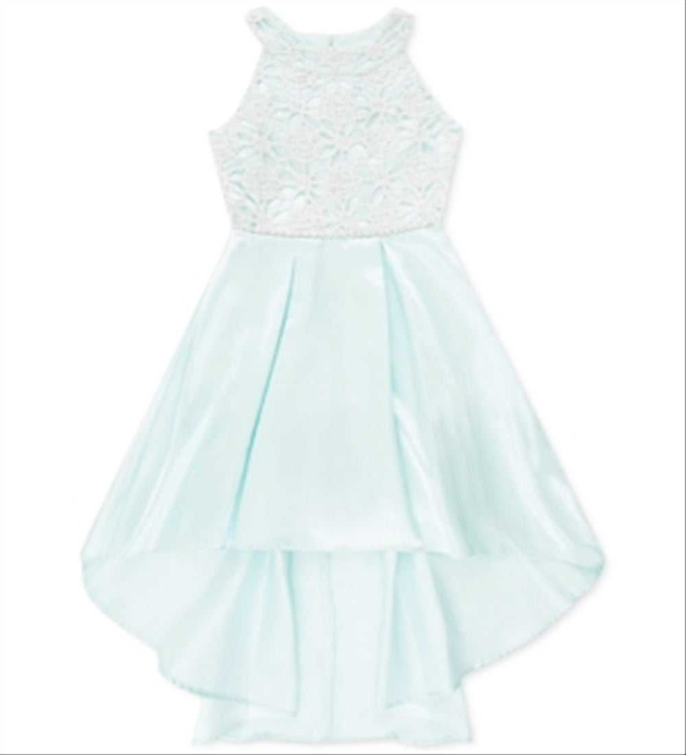 Speechless Girl's Lace to Pleated High Low Dress Blue Size 8