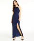 Approx. 44-3/8" long from center back to hem. Length is based on size 7 and varies 5/8" between sizes|Round neckline|Back zipper closure|Allover glitter; lace back with cutout; slit at front hem|IMPORTANT NOTE: This item arrives with a return tag attached and instructions for removal. Once the tag is removed from the dress, this item cannot be returned.|Shell: polyester/spandex; lining: polyester