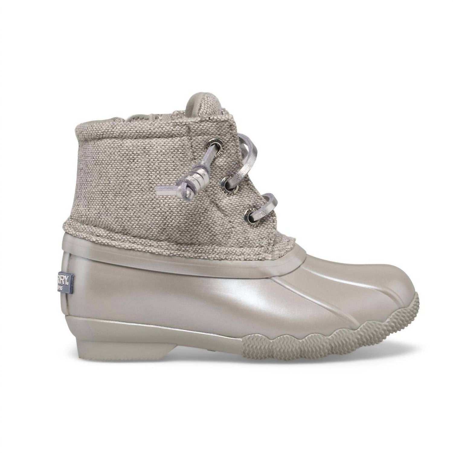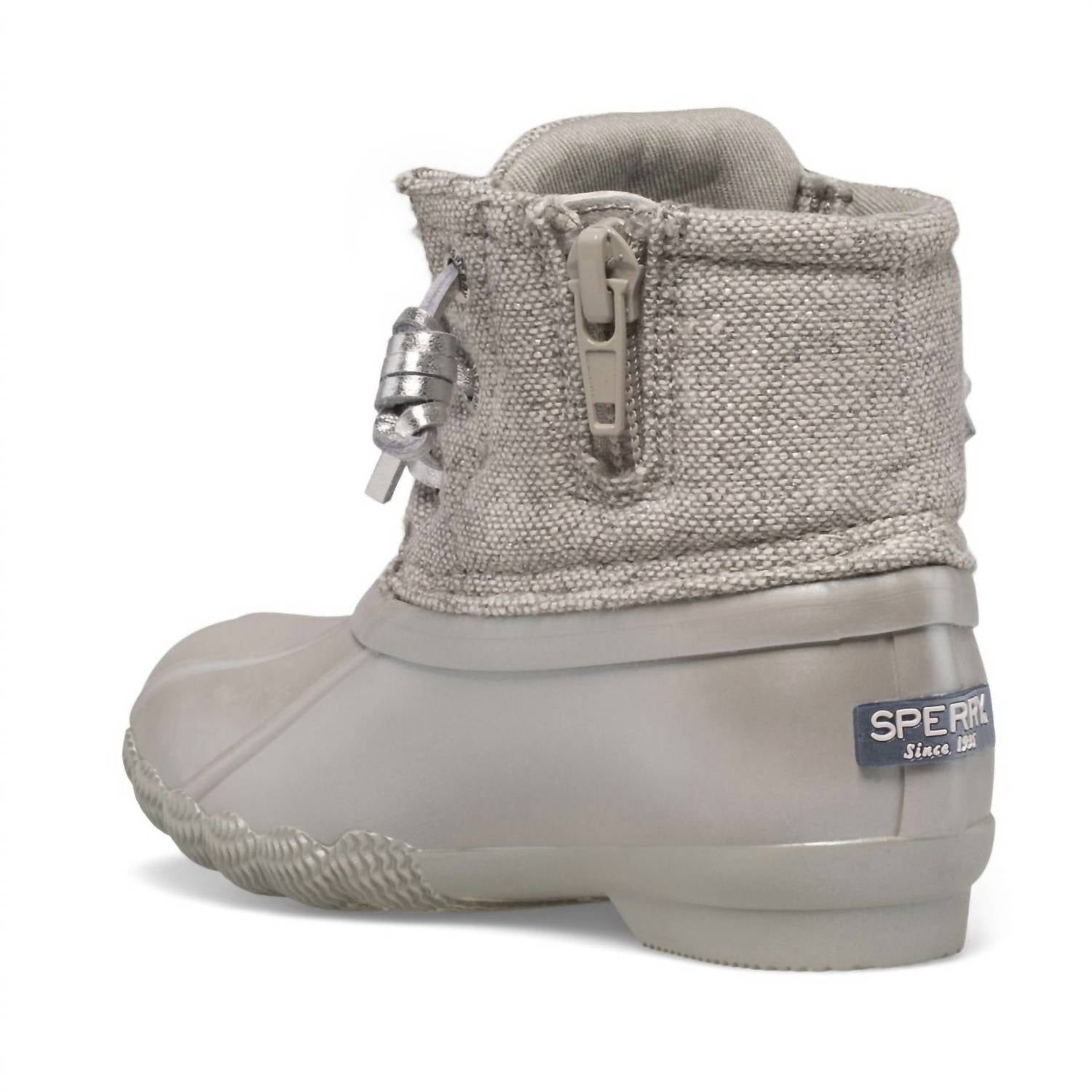 Has a convenient side zipper makes it easy for on and off. Durable rubber and textile upper. Fixed barrel lacing for added detail. Water resistant construction. Vulcanized bottom for cushion and flexibility.