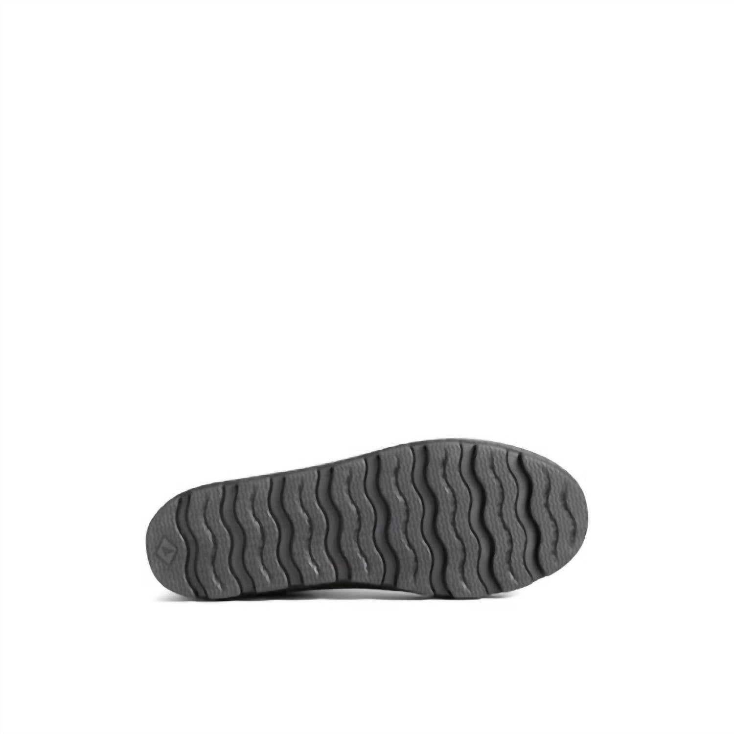 Step into wet weather with confidence in the Sperry Women's Torrent Chelsea Waterproof Rainboot, crafted in sleek black. These rain boots feature a waterproof rubber upper and a cozy micro-fleece lining, ensuring both style and warmth. The durable non-marking rubber lug outsole with Wave-Siping™ technology offers exceptional traction, while the double gore construction allows for easy on-and-off wear. Ideal for any outfit, from skirts to wool trousers, these boots promise to keep you stylish and comfortable.