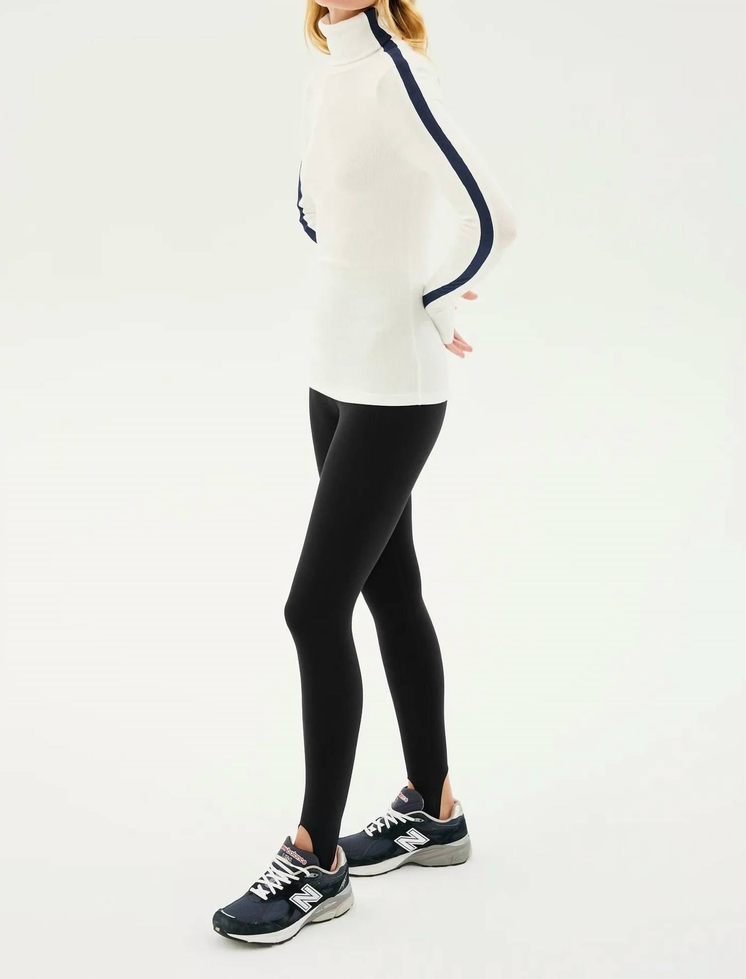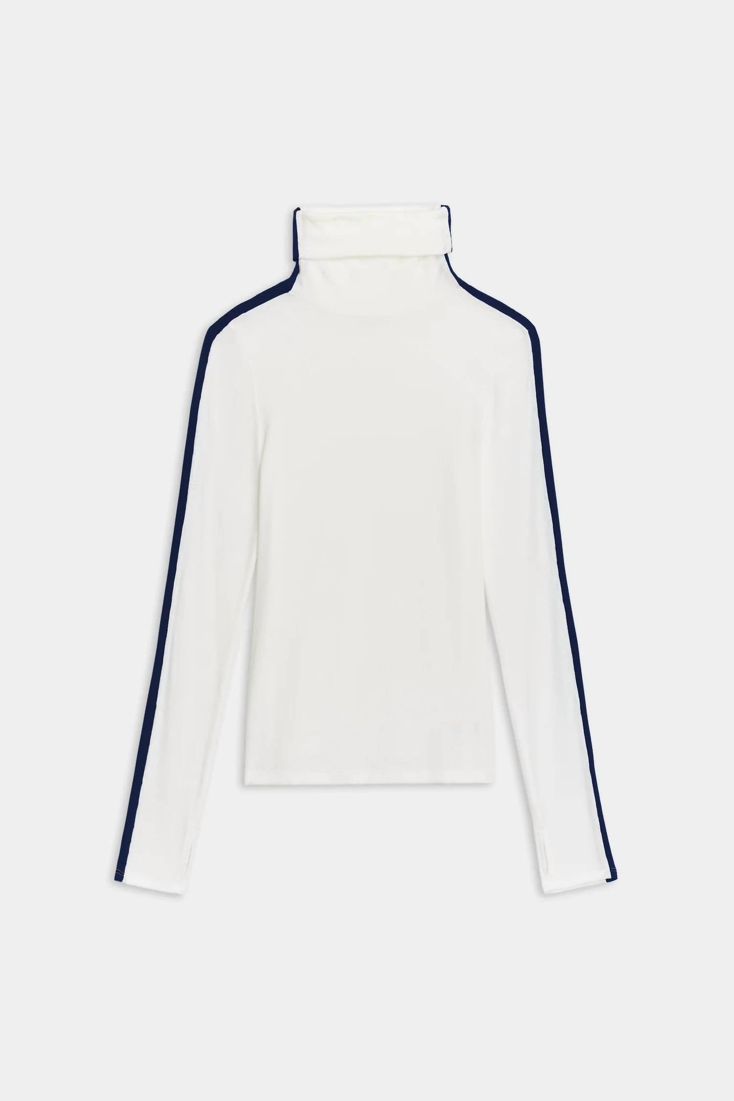 A classic staple that every closet needs. Discover the Jackson Rib Turtleneck Top by SPLITS59, an essential piece for medium-impact workouts like hot yoga, barre, and Pilates. This turtleneck features long sleeves with neck to cuff stripes, crafted from a supremely soft 2x1 baby rib knit fabric. Composition: 95% Modal, 5% Spandex. Origin: Made in the USA. Closure: Pull-on. Care: Machine wash cold. The longer length provides added coverage and an elegant fit, sitting at the hip on most bodies.