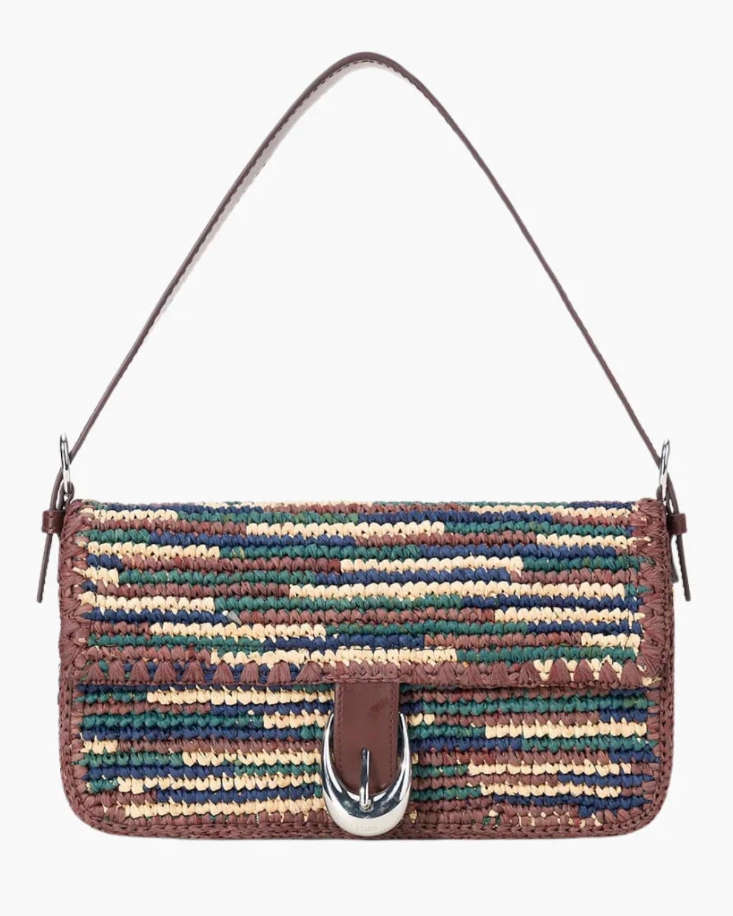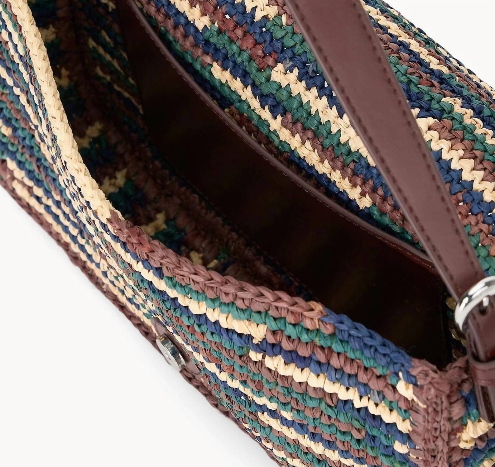 Discover the Women's Harlow Raffia Bag by STAUD, a perfect blend of natural texture and elegant design in mixed raffia. This shoulder bag is crafted from 100% natural raffia and features STAUD's signature Moon buckle hardware for a touch of modern sophistication. The secure snap closure ensures your belongings are safe, while an interior pocket provides convenient organization. Add a statement piece to your collection with this exquisite accessory.