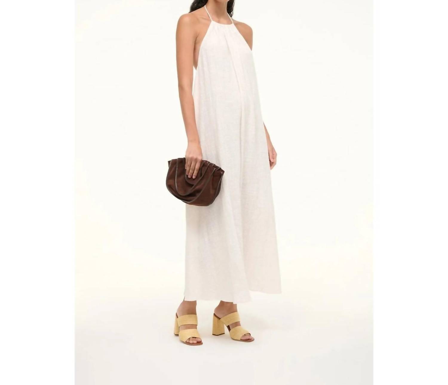 Pair these beauties with your favorite skinny jeans or dress for a night out on the town. Step into elegance with the Women's Skylar Heels by STAUD, a quintessential addition to your summer wardrobe. These high block heel sandals are crafted with a double strap design and seasonally wrapped in natural raffia, perfect for those special occasions. The upper is composed of 100% natural raffia, while the sole blends 75% cow leather with 25% rubber, ensuring both style and durability. With a heel height of 100mm (3.94 inches), these chic heels are ideal for holiday parties and embody a minimalist trend.