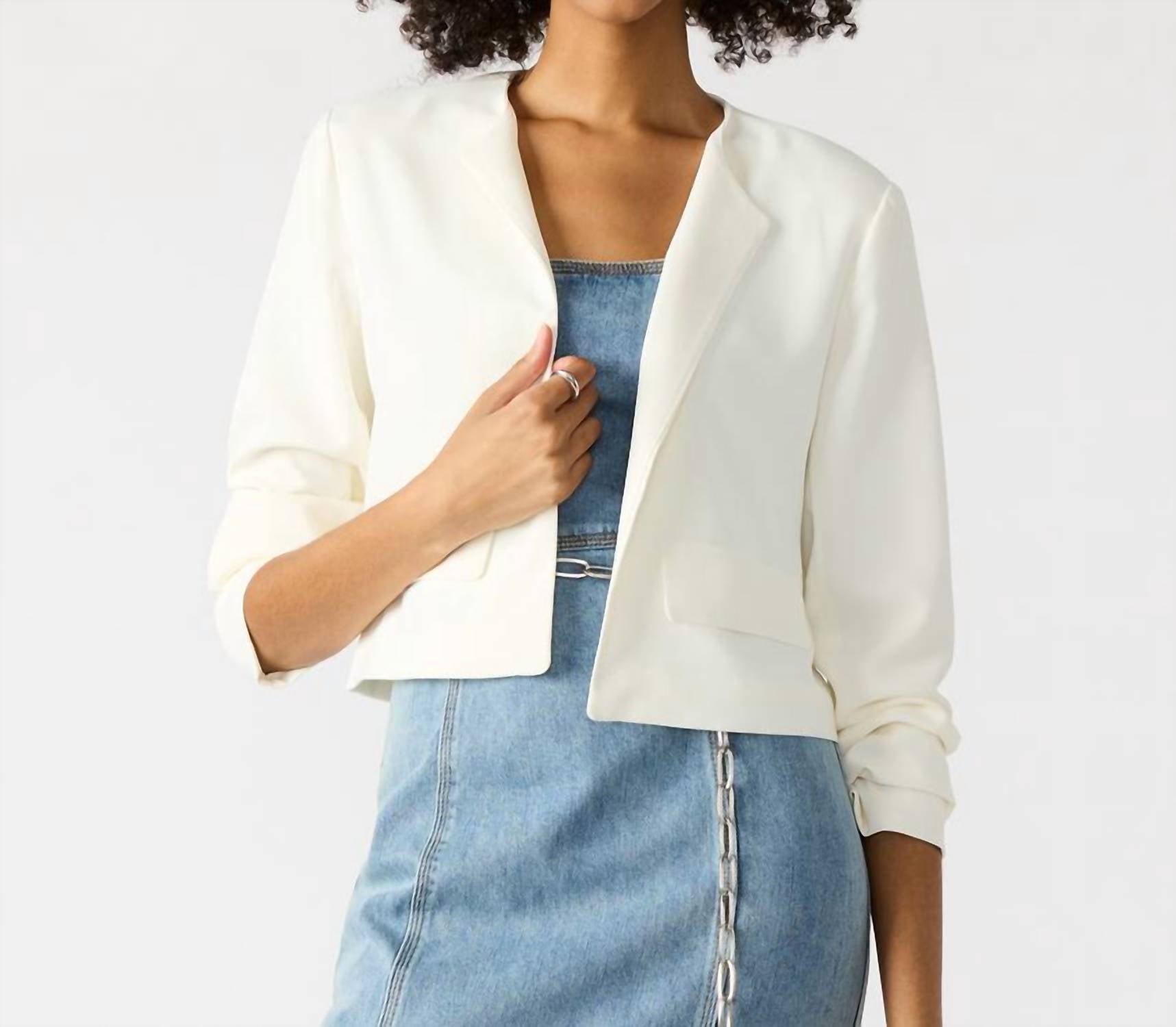 A blazer so versatile you can wear it to the office or pair it with jeans for a more casual look. Elevate your evening look with the Cropped Open Front Blazer by STEVE MADDEN, designed with long sleeves for a sophisticated silhouette. Made entirely from 100% polyester, this white blazer offers a minimalist, solid pattern ideal for spring seasons. With a chic crewneck style, it's perfect for evening events. Care: Hand washing is recommended.