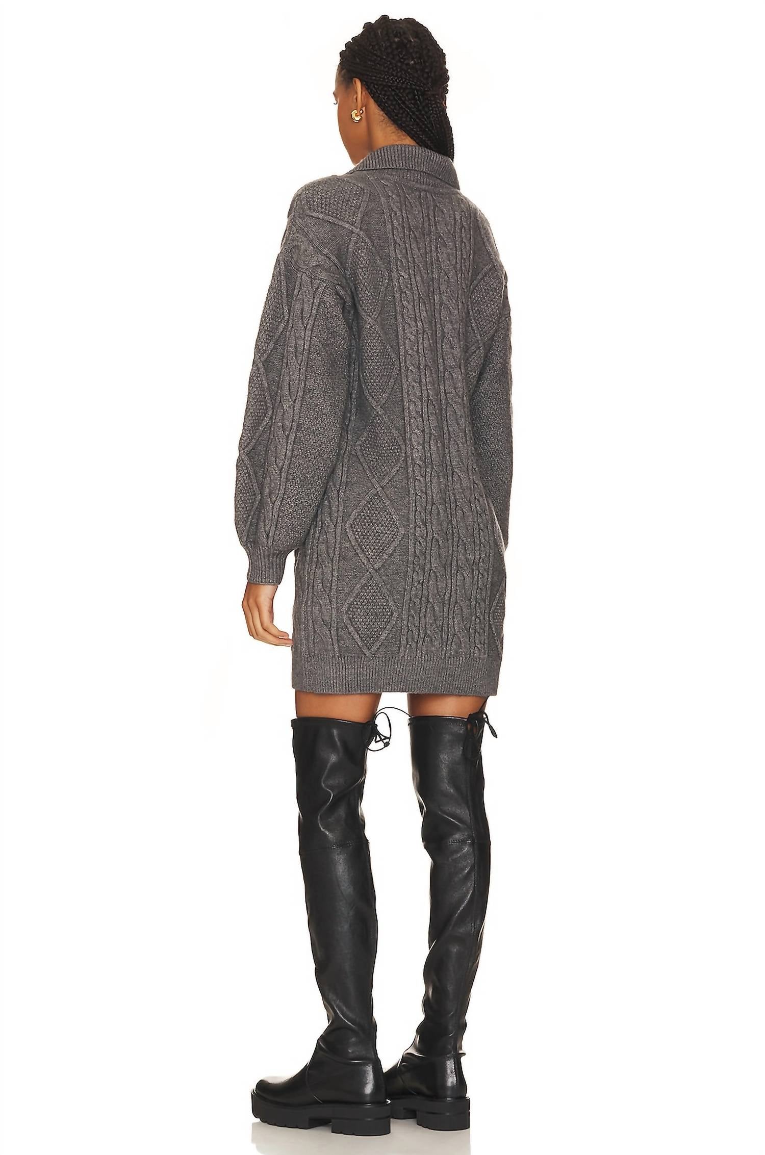 Introducing the Debbie Sweater Dress by Steve Madden, a stylish Heather Grey piece perfect for your winter wardrobe. This mini dress features long sleeves and a classic split neckline with a notch collar, designed for a textured look with its cable knit fabric. Its composition includes 40% Acrylic, 31% Nylon, and 29% Polyester, ensuring a comfortable and cozy fit. The dress has a pull-on closure and should be hand washed to maintain its quality.
