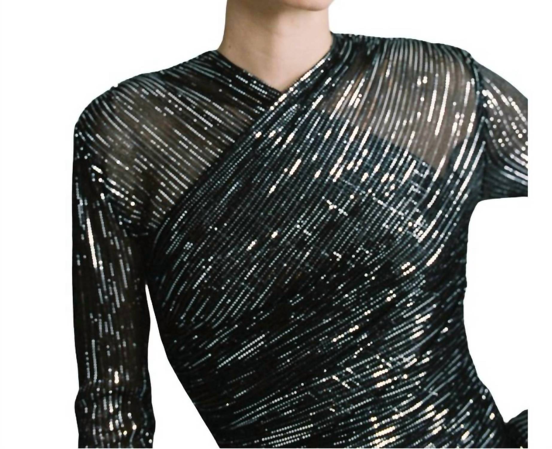 The Lapisa Dress by STEVE MADDEN is a stunning black mini dress, perfect for the maximalist trend this summer. Its long sleeves and bodycon silhouette are complemented by a textured design and a sophisticated V-neckline. Originating with a button closure, this mini dress does not feature pockets for a sleek and streamlined look. Although specific care instructions are not provided, this dress exudes style and elegance for any occasion.