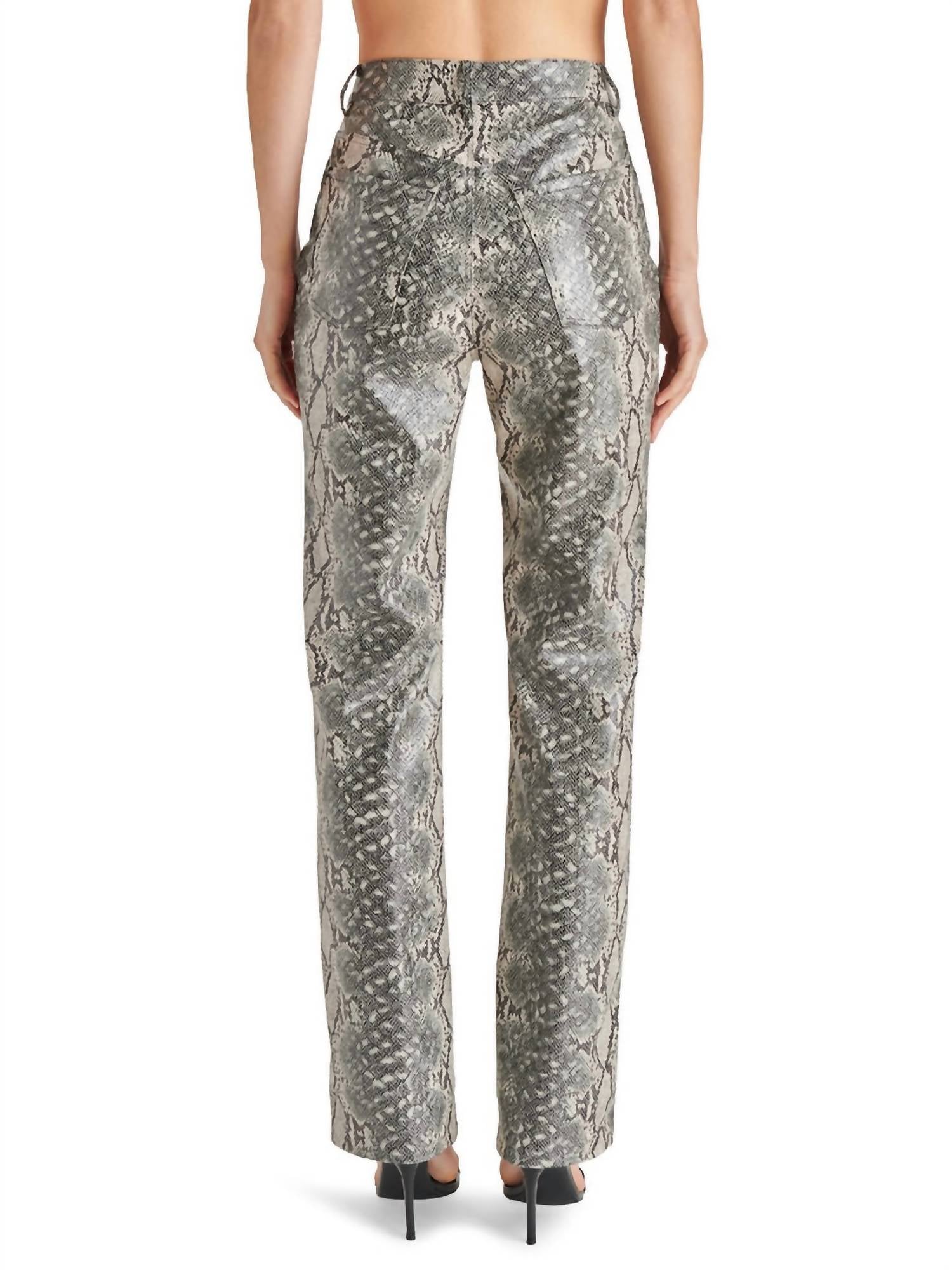 Pair these straight leg jeans with flats, sandals or even heels! You can't go wrong. The Loren pant features classic straight-leg jeans styling but update the design with a faux leather construction. Zipper fly closure. Two front pockets with an inner coin pocket. Unlined with soft inner facing. Length: 32.5". Shell: 100% polyurethane, inner facing: 100% rayon. Care instructions: wipe clean with a damp cloth, do not bleach, line dry, use pressing cloth and iron on low if necessary, do not dry clean.