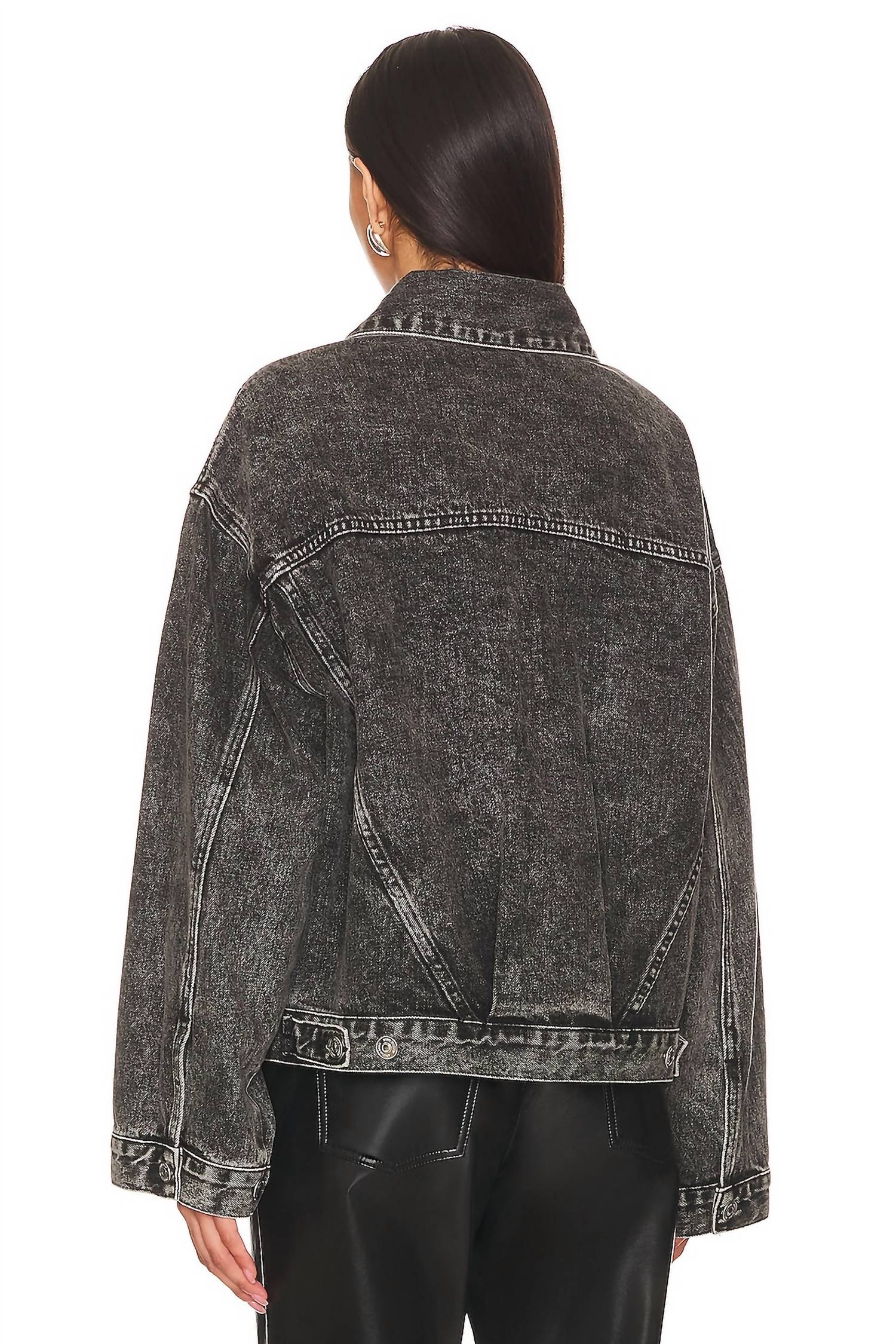Meet the Sienna Denim Jacket by STEVE MADDEN, meticulously crafted in classic black denim. With long sleeves and a boxy fit, this jacket is made from 100% cotton, offering both comfort and style. Its length is 23.25 inches, tailored to perfection. Featuring a front button closure and practical pockets, it demands a spot in any fashion-forward wardrobe. Care instructions: hand wash cold.