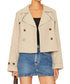 Introducing the Sirus Jacket by STEVE MADDEN, a chic khaki cropped trench coat designed for modern sophistication. This trench features a solid pattern in a 100% polyester composition, offering both style and durability. With a double-breasted button closure and an elegant collar neckline, the jacket includes two functional side pockets for practical flair. The length measures 21.5", and it requires hand washing to maintain its pristine condition. Ideal for layering, this jacket is crafted with long sleeves to adapt to cooler climates.