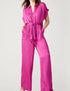 Step into sophistication with the Tori Button Down Jumpsuit by STEVE MADDEN in a vibrant Bright Pink Rose, perfect for making a statement. Featuring elegant dolman sleeves, a relaxed wide-leg style, and high-waist rise, this jumpsuit is designed for relaxed elegance. Crafted from soft, 100% polyester satin, it offers a chic tie-front detail and functional pockets for convenience. Closure: Button closure. Care: Hand wash cold separately. Inseam: 30".