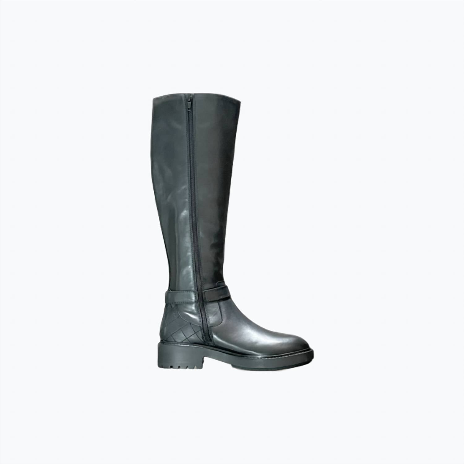 Stunning black over-the-knee boots. Crafted from premium leather. Featuring an elegant ankle strap with buckle and a distinctive harlequin stitched heel cuff. Boast a comfortable textile lining, a sturdy 1.5-inch block heel, and a 1.0-inch rubber lug sole for reliable traction. 14-inch shaft circumference. Designed to provide the perfect fit and style.