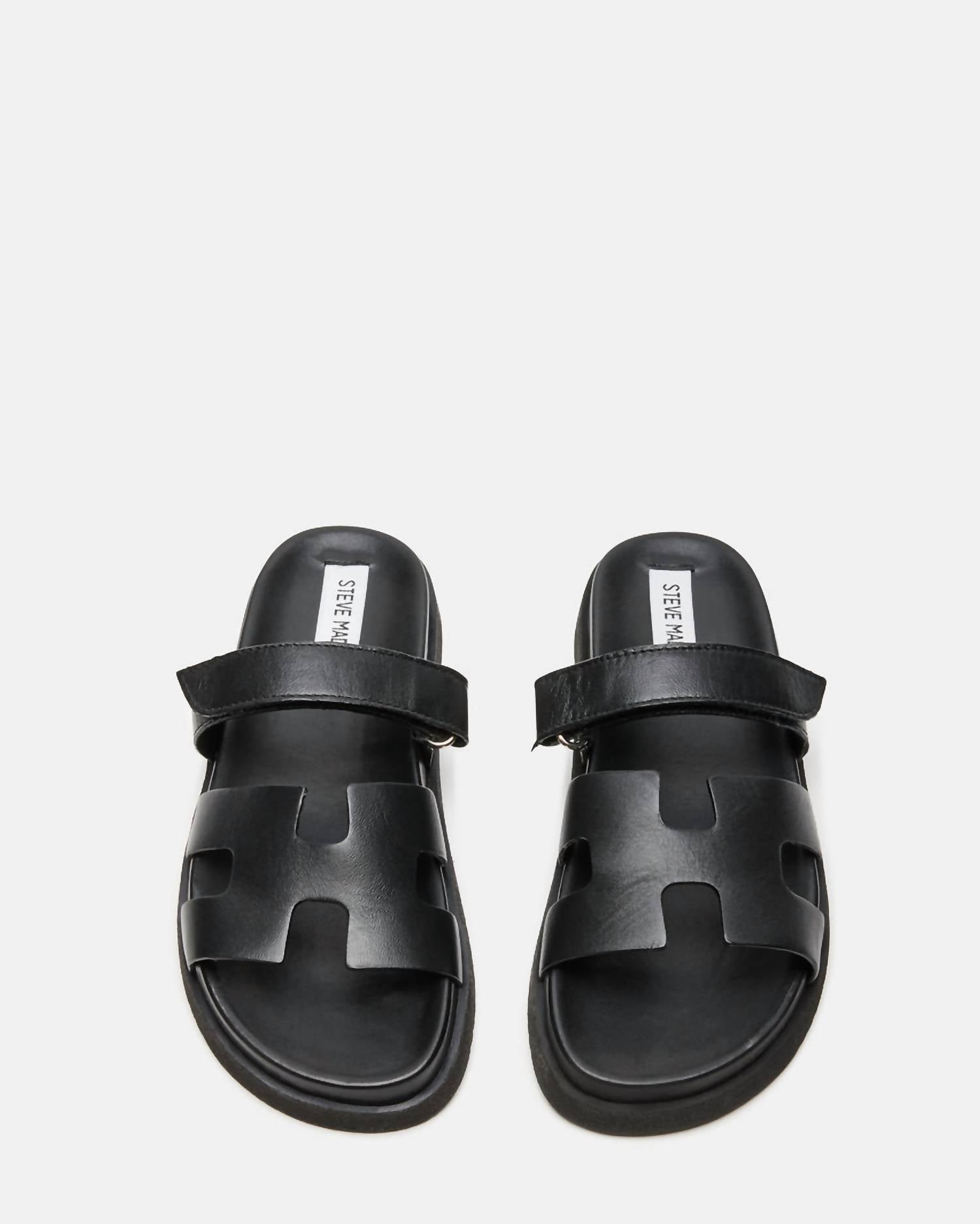Introducing the Women's Mayven Slides by Steve Madden, a chic and effortless addition to your spring wardrobe. These sandals feature a sleek open toe design crafted from high-quality leather in a timeless black hue. Perfect for the warmer months, they offer a sophisticated touch for both casual and dressy occasions. Step out in style with these versatile slides designed exclusively for women.