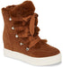 2" hidden wedge heel|Round-toe lace-up hidden-wedge sneakers|Faux-fur detaling|Suede upper; acrylic faux-fur trim; manmade lining; rubber sole|Imported