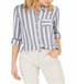 Style & Co Petite Striped Roll-Tab Blouse Blue Size Petite S