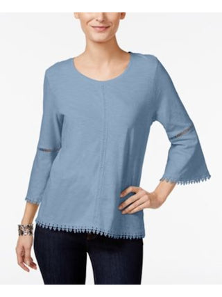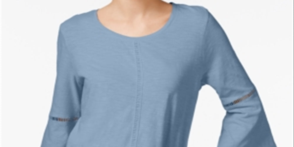 Style & Co Women's Bell Sleeve Jewel Neck Top Blue Size Petite Medium