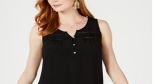 Style & Co Women's Split Neck Button Tank Blouse Black Size Large