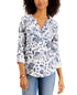 Style & Co Women's Cotton Printed 3/4 Button Front Top White Size Medium