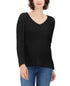 Style & Co Women's Cotton Rib Knit V Neck Sweater Black Size Large