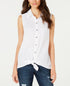 A front tie adds a stylish twist to a Style & Co sleeveless top in cool and comfortable puckered cotton. Perfect for dressing up your jeans.| Relaxed fit; hits at hip; approx. 28 long| Due to generous sizing| we suggest sizing down for the perfect fit| Point collar; front button closures| Allover texture; self-tie at front hem; high-low hem