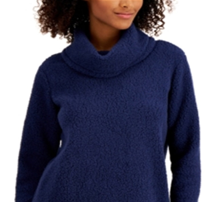 Style & Co Women's Cowlneck Sherpa Pullover Blue Size X-Large