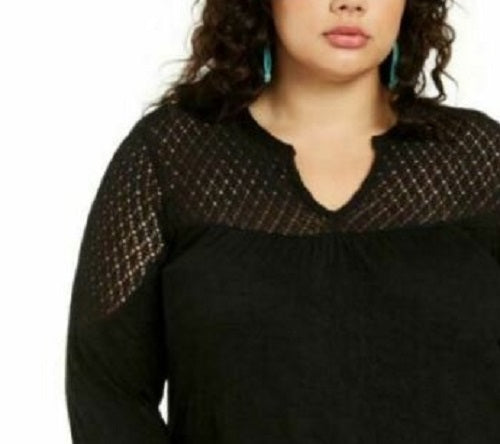 Style & Co Women's Crochet-Yoke Top Black Size Small