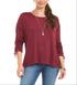 Style & Co's petite top is your new go-to with a cozy relaxed fit and any-time silhouette. Drawstring ruching lifts each sleeve at the cuff. | Relaxed fit; approx. 23 long | Designed to fit and flatter 5'4 and under frame| Scoop neckline| Drawstring tie detail at cuff| 3/4-sleeves