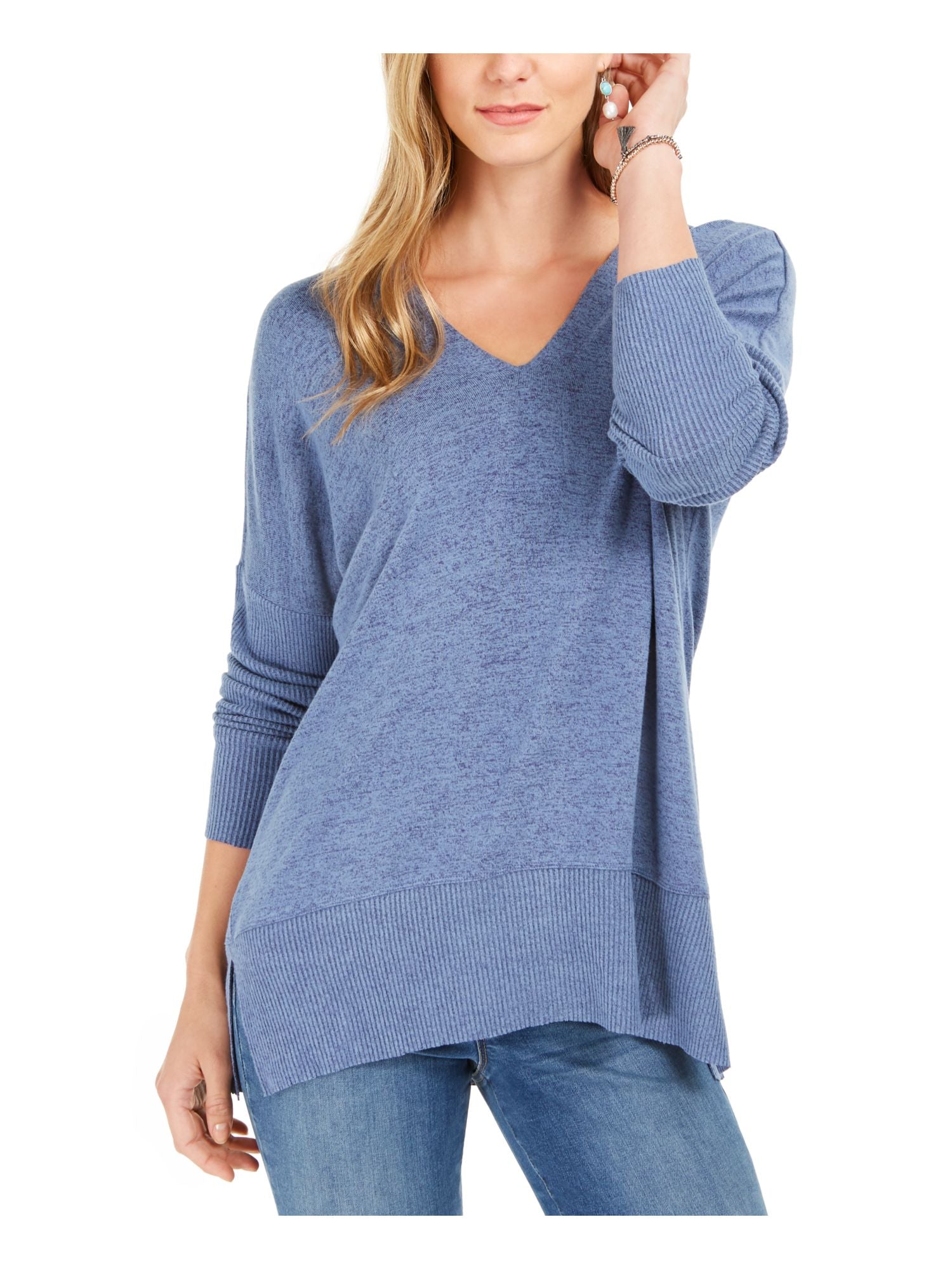 Style & Co Women's Drop Shoulder V Neck Tunic Blue Size Large