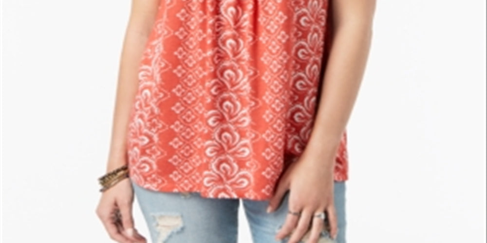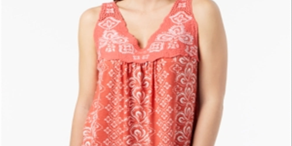 Style & Co Women's Embroidered Sleeveless Top Pimpernel Solstice Dream Red Size Medium